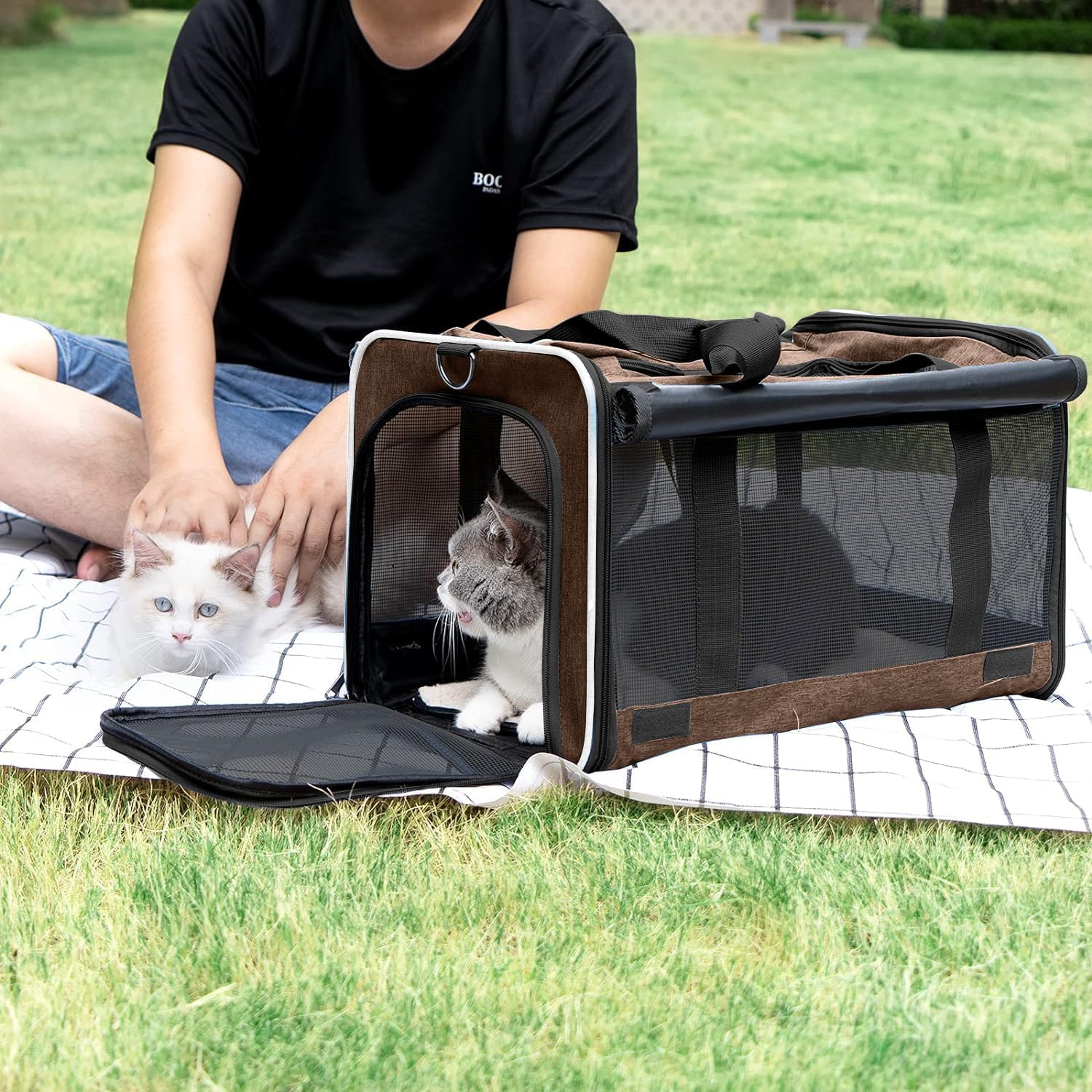 Pet Carrier for Large Cat Soft-Sided Animal Traveling Bag for Medium Cat up to 20lbs / Washable Small Dog Puppy 10 lbs Crate Case with Privacy Curtains for Home Outdoor Travel Mocha Brown