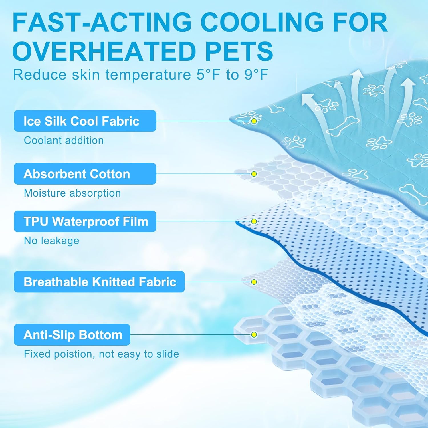 BEAUTYZOO Upgraded Dog Self Cooling Mat Ice Silk Chill Pads for Small Medium Large Dogs Q-MAX>0.43- Summer Reusable Pet Training Pad - Absorbent Non-Slip Cool Mat for Kennels, Crates, Beds, 23" x 35"