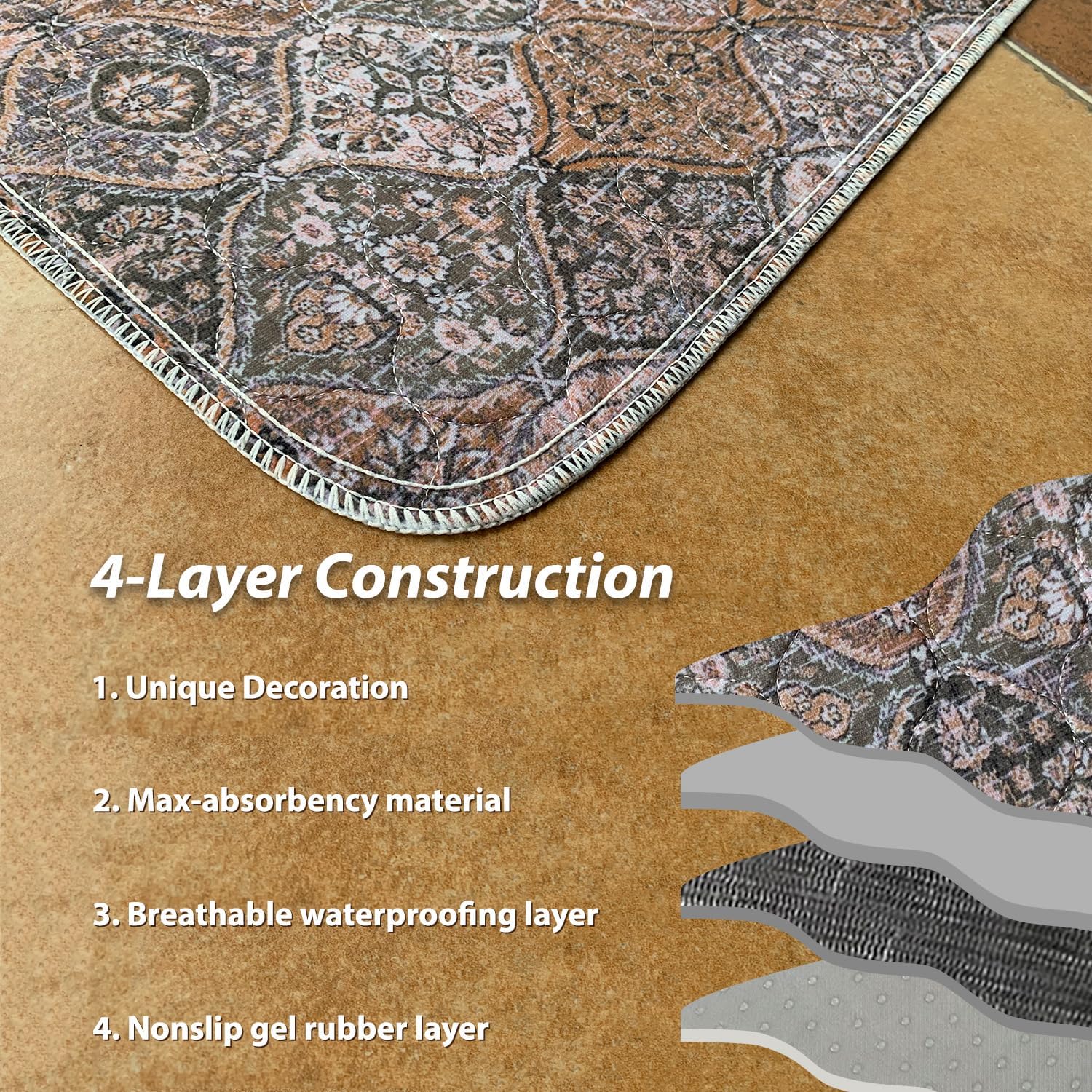 nunubaby Washable Pee Pads for Dogs, Stylish, Non-Slip and Leak-Proof Pee Pads. Reusable Potty Pads for Dogs for Crates and Floors.(Brown/Multi, 48" x48")