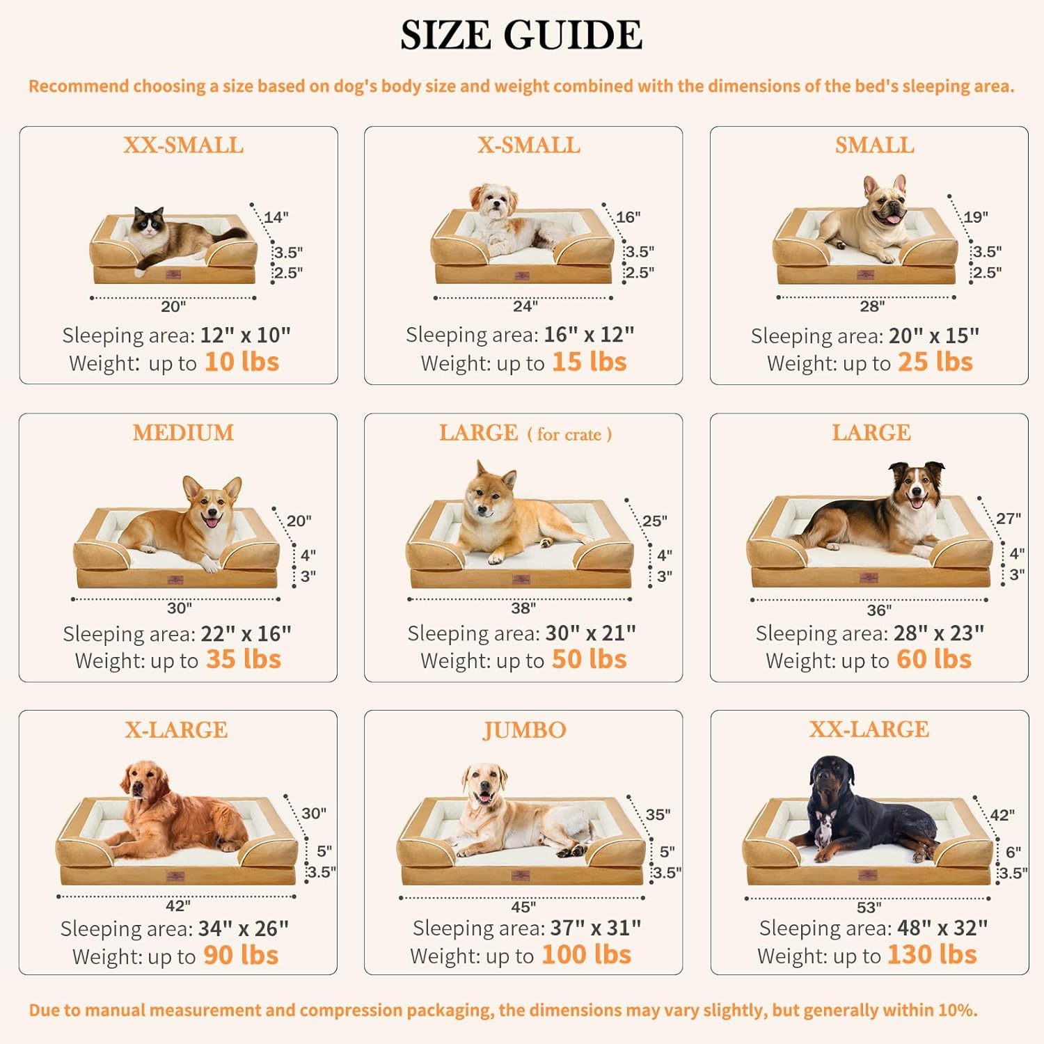 Comfort Expression Small Dog Beds Waterproof Orthopedic Foam Dog Sofa Beds for Small Dogs Comfy Pet Bed with Washable Removable Cover & Non-Slip Bottom(X-Small,Khaki)