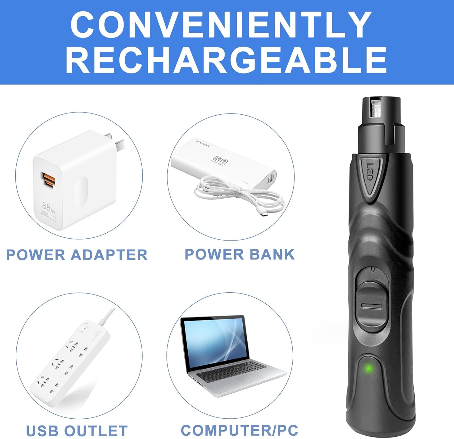 2-Speed LED Dog Nail Grinder,Professional Electric Pet Nail Trimmer with Quiet Motor, Painless Paws Grooming & Smoothing for Small/Medium/Large Dogs and Cats (Black)