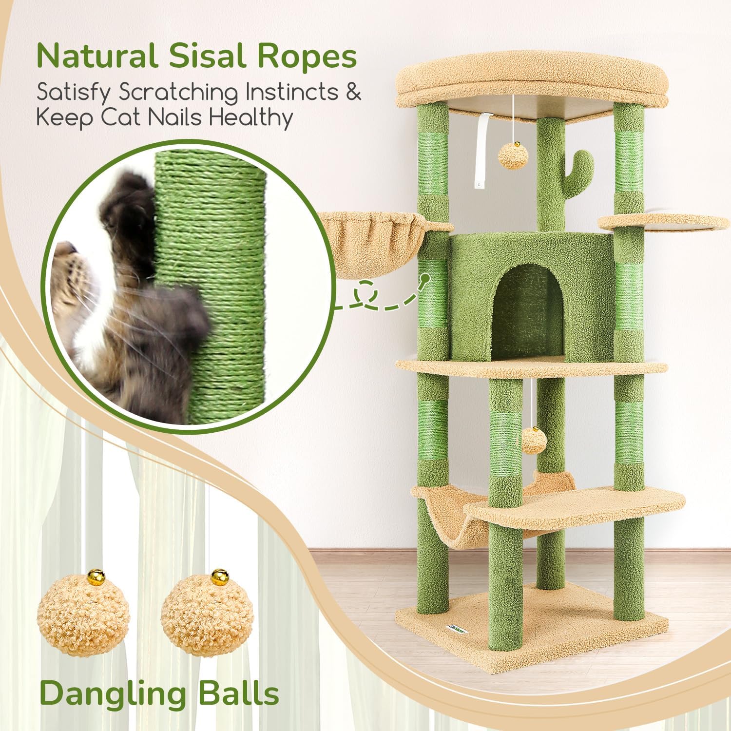 - Revitalize Indoor Space: This 51" tall cactus cat tree, inspired by the cactus, transforms your interior space into a vibrant and joyful environment. It acts as a living green plant, adding a touch of natural greenery and tranquility to your home