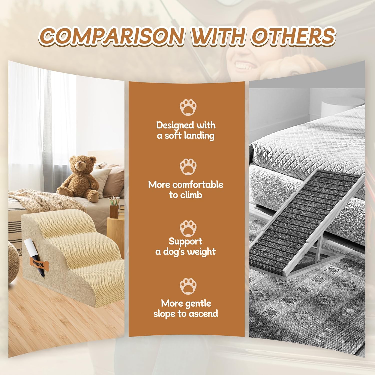 - 33D REBOUND HIGH-DENSITY FOAM: Our 33D foam delivers 63% faster rebound vs standard foam with enhanced weight capacity. Perfect for puppies, senior dogs, and pets recovering from surgery to access beds/couches safely. Dual-purpose as cat stairs for multi-pet households