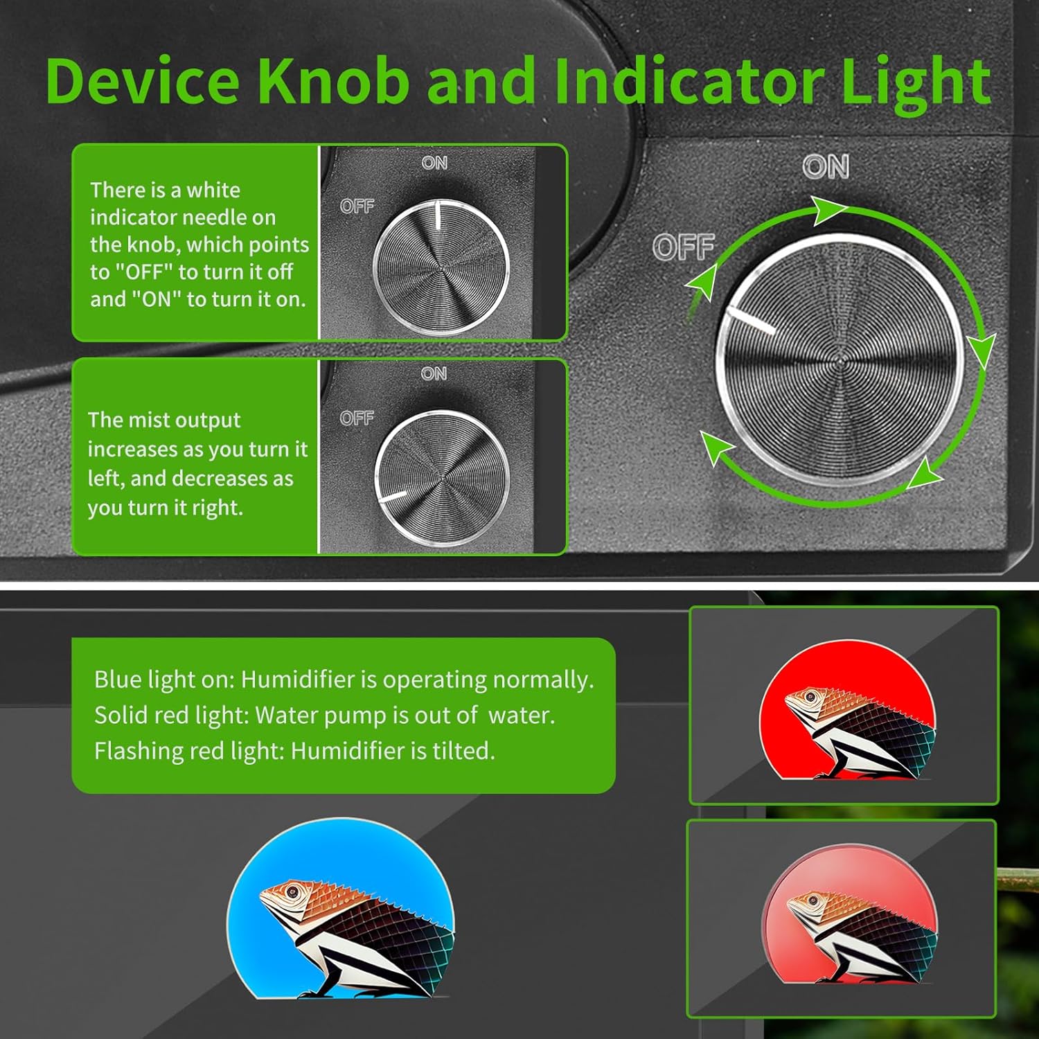 Reptile Fogger Humidifier for Glass Terrariums, Auto-Refill Misting System with Timer, Suitable for Reptiles/Amphibians/Grow Tents