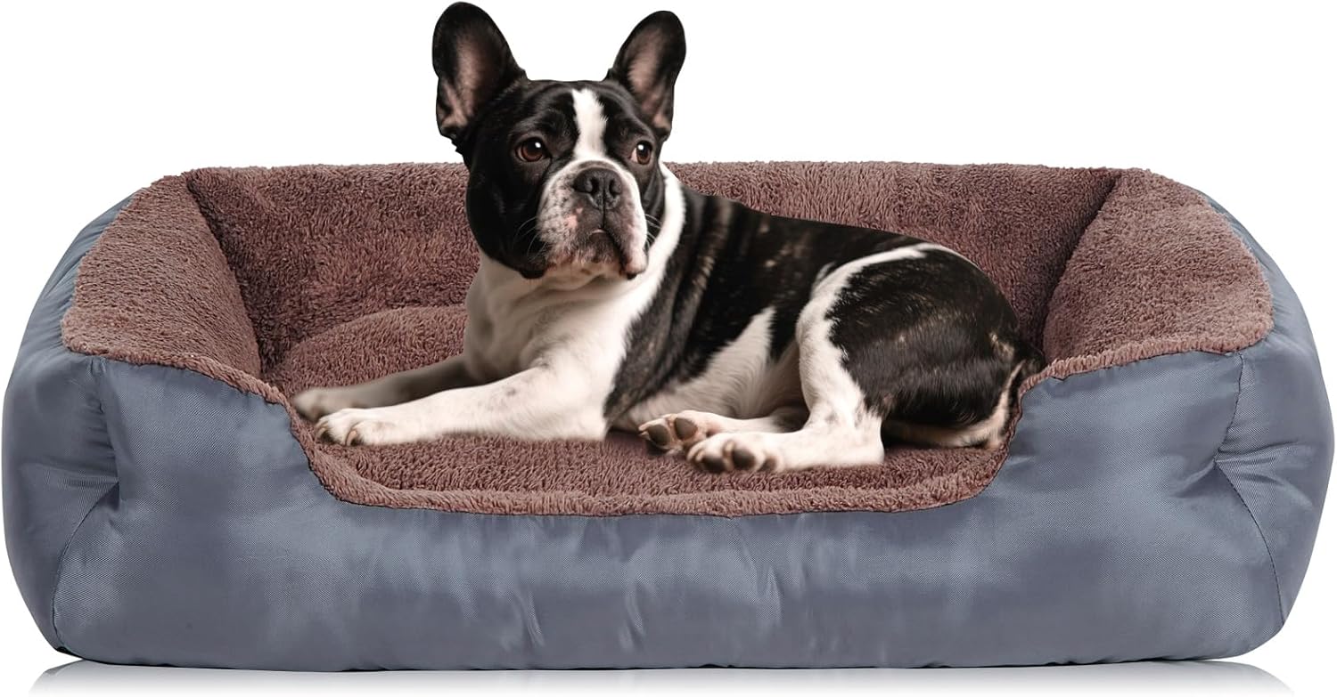 - COMFORT AS PRIORITY: This rectangular dog bed adopts four-sided bolsters wrapping design that provides your pet enough security, help pets fall sleep quickly and deeply. Raised rim provides comfortable support for your pet’s neck and head. The low front edge is easy access for your pet, protects your pet's knees and promotes accessibility for pets of all ages