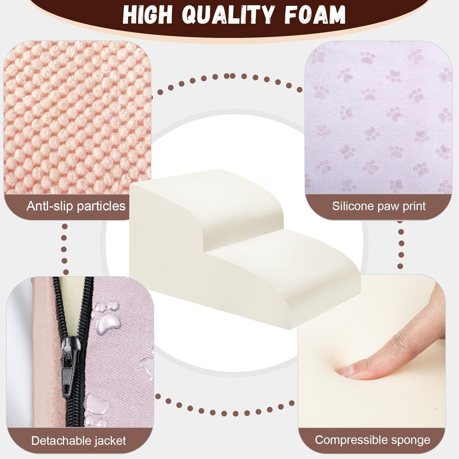 - Double Sided Anti Slip: The dog steps cover is made of corduroy with greater friction than other fabrics, which provides extra grip while in use, the bottom features nonslip rubber dots, preventing pets from sliding while climbing, providing pets with double safety protection