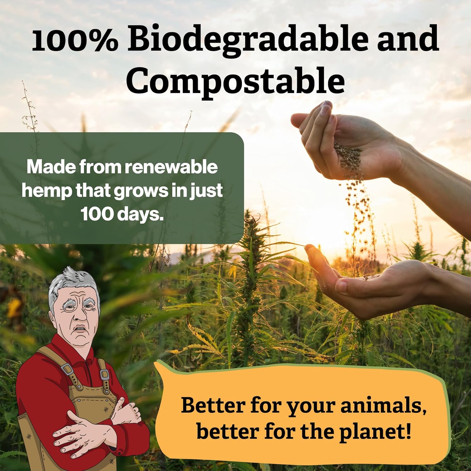 - Hypoallergenic & Eco-Friendly Bedding: Safe for all animals and pets, Cranky Frank hemp bedding is hypoallergenic and carbon-friendly, sourced from hemp, the crop that absorbs the most CO₂ on Earth. Better for your animals, better for the planet.