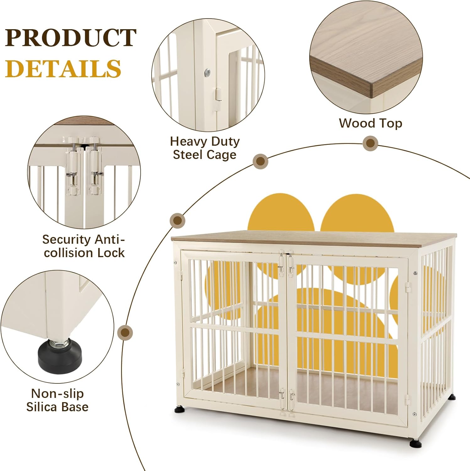 - Multi-Lock Guarantee: The dog crate has 4 sliding locks on the front door and 2 sliding locks on the side door. The design of multiple locks can effectively prevent dogs from opening the crate by themselves. Meanwhile, the sliding locks are easy and smooth to operate and convenient to open and close the door, which balances safety and convenience of use
