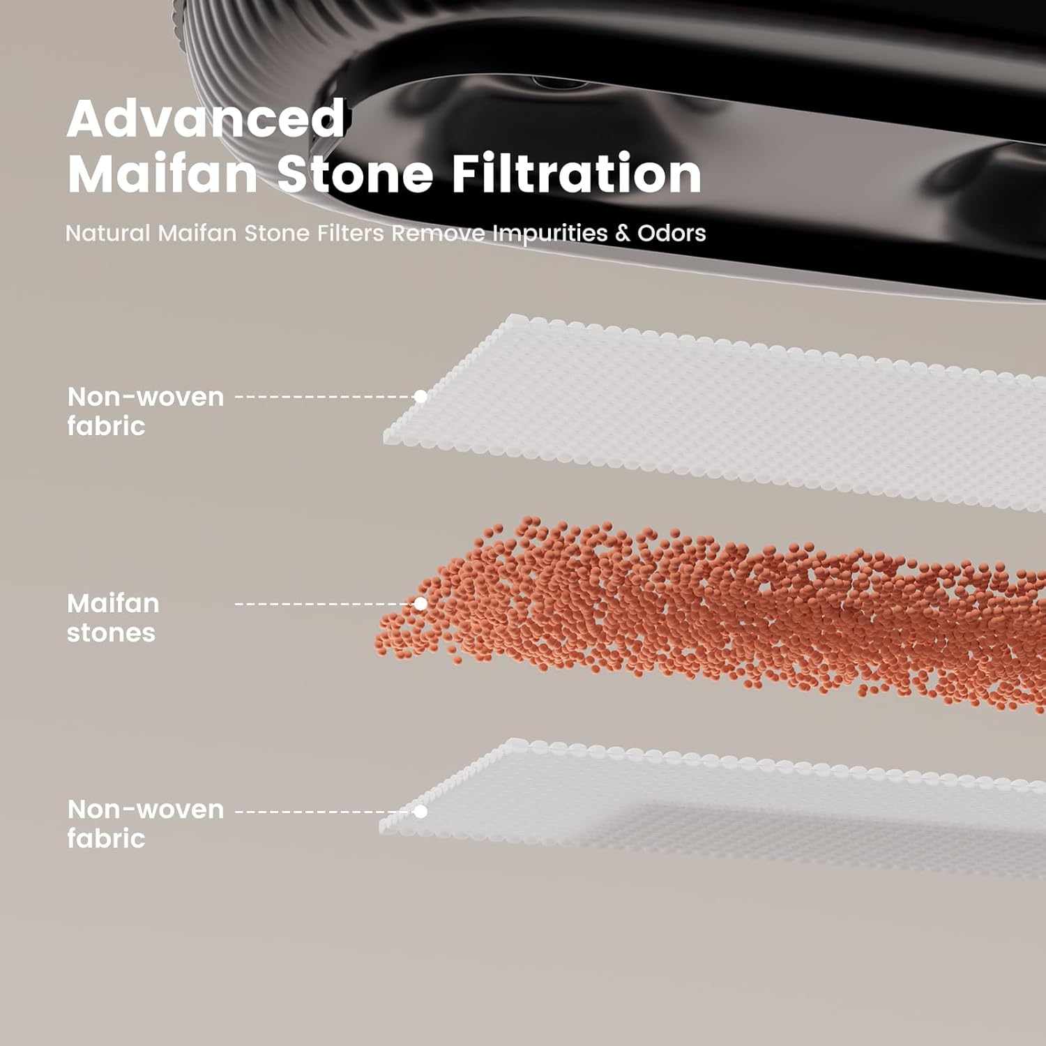 - 3-Layer Maifan Stone Filtration & UV — Non-woven fabric + natural maifan stone + non-woven fabric trap hair, dust, and impurities. and the Water Pump Built-in UV to keep the water hygienic. Includes 2 replacement filters(and thanks so much for our dear customer message. our filter products will be available for sale in as soon as two months).