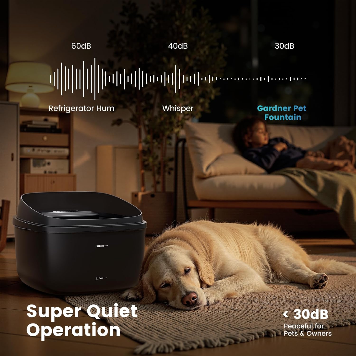 - Ultra-Quiet Operation (<30dB) — Silent pump won’t disturb pets or light sleepers. Perfect for bedrooms, offices, or night-time use
