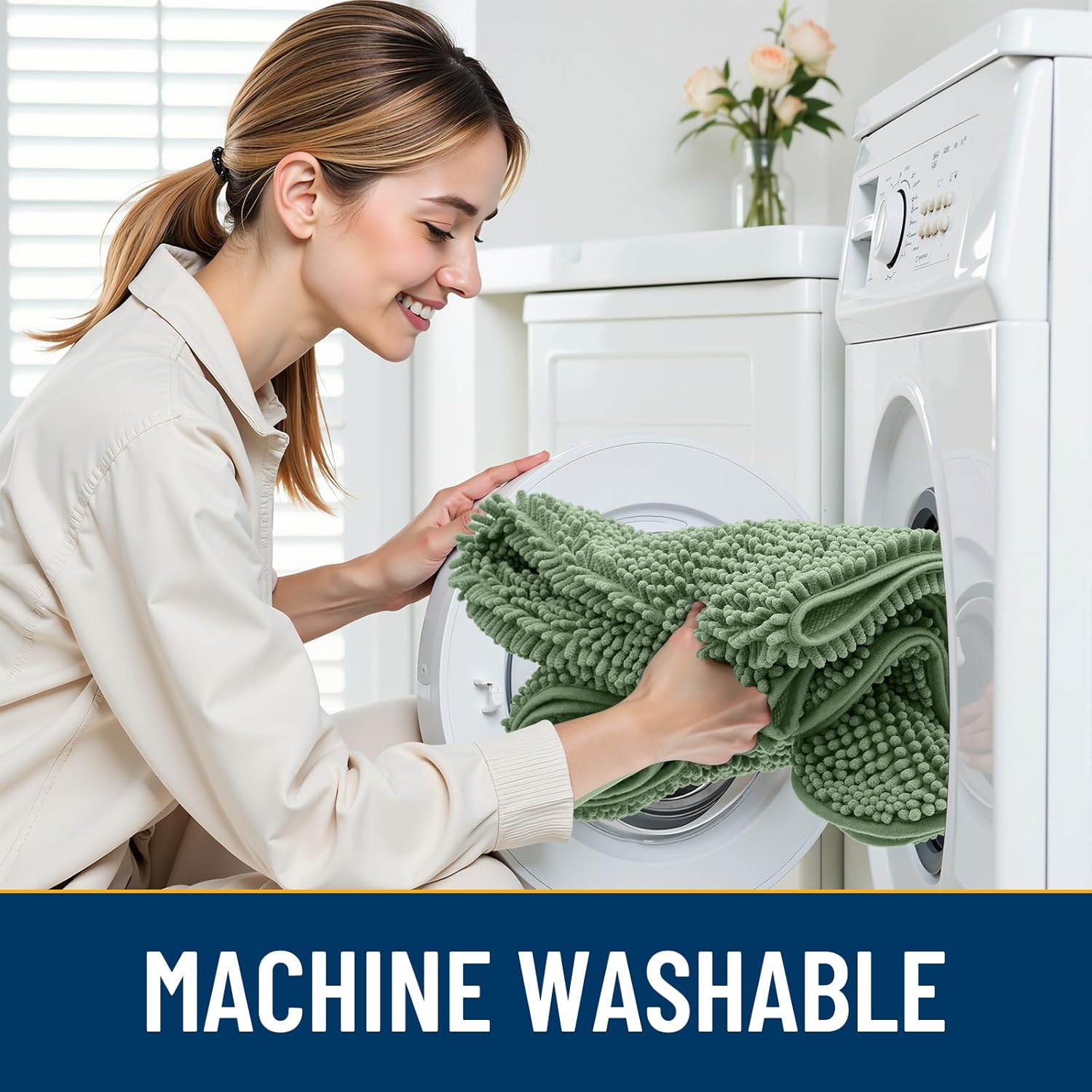 Smiry Dog Door Mat for Muddy Paws 30x20, Absorbs Moisture and Dirt Doormat, Non-Slip Washable Quick Dry Chenille Front Door Mat Indoor Entrance, Entryway Carpet for Inside Floor, Olive Green