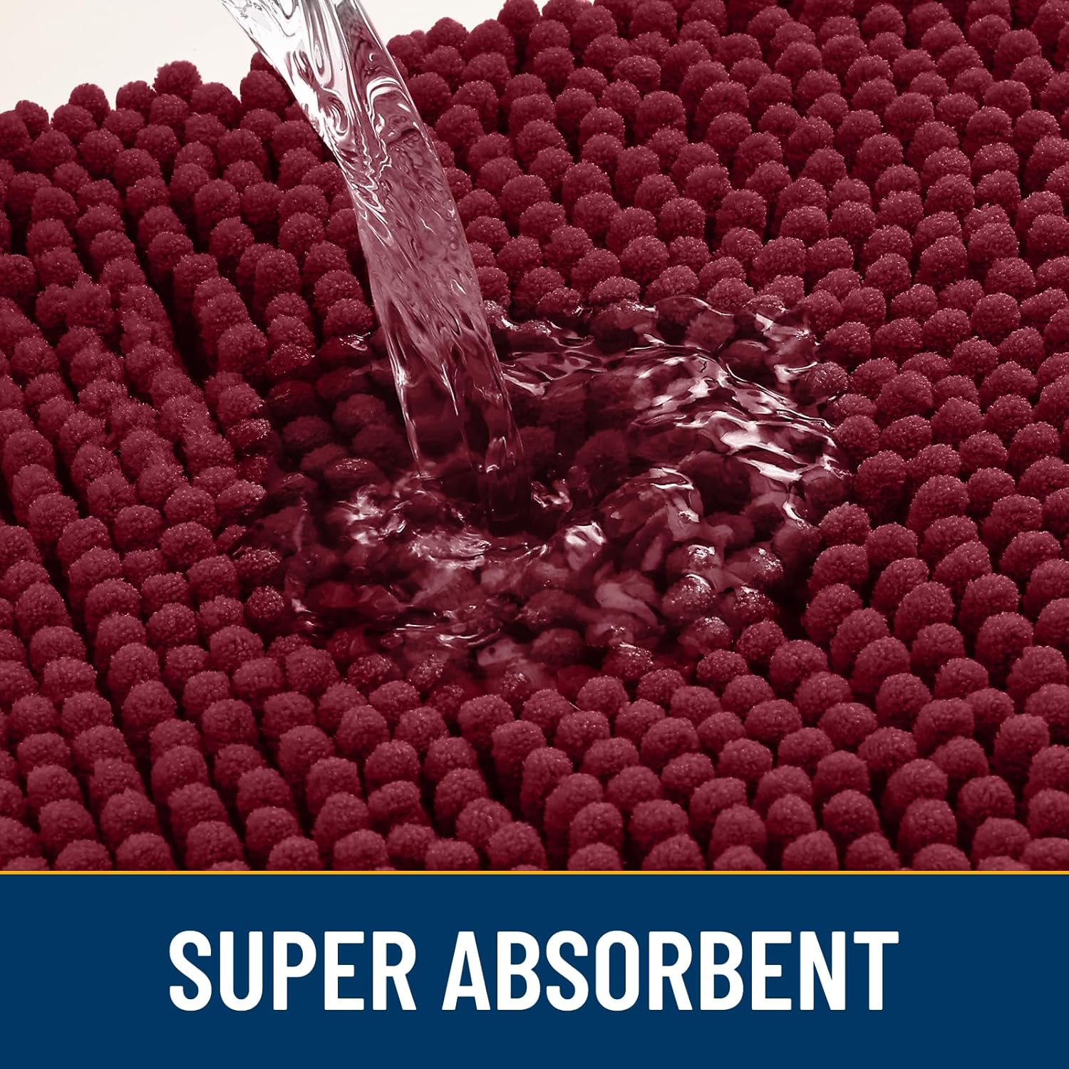 Smiry Dog Door Mat for Muddy Paws 48x30, Absorbs Moisture and Dirt Doormat, Non-Slip Washable Quick Dry Chenille Front Door Mat Indoor Entrance, Entryway Carpet for Inside Floor, Burgundy