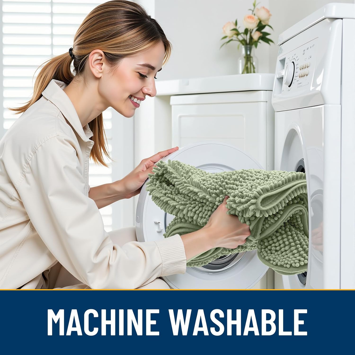 Smiry Dog Door Mat for Muddy Paws 30x20, Absorbs Moisture and Dirt Doormat, Non-Slip Washable Quick Dry Chenille Front Door Mat Indoor Entrance, Entryway Carpet for Inside Floor, Sage Green