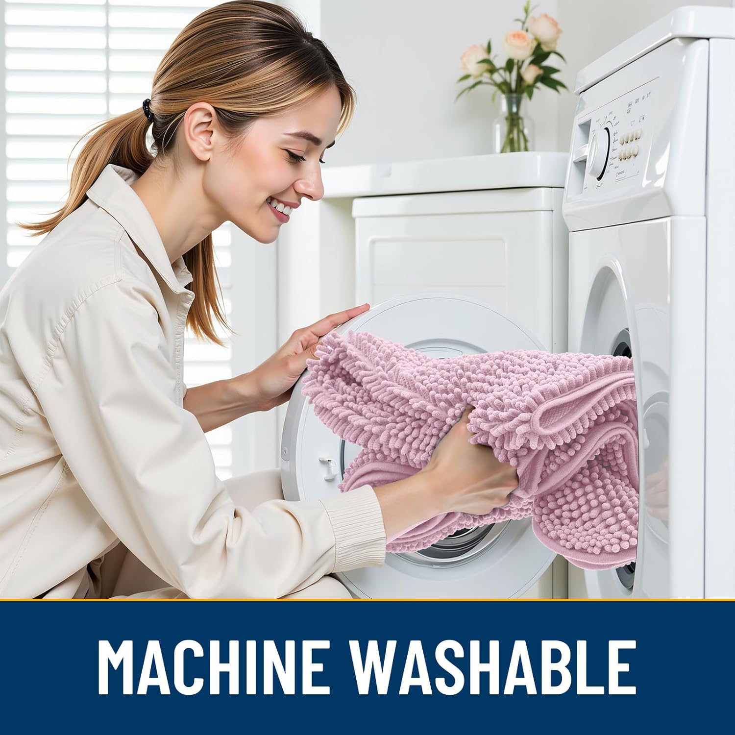 Smiry Dog Door Mat for Muddy Paws 36x24, Absorbs Moisture and Dirt Doormat, Non-Slip Washable Quick Dry Chenille Front Door Mat Indoor Entrance, Entryway Carpet for Inside Floor, Dusty Rose