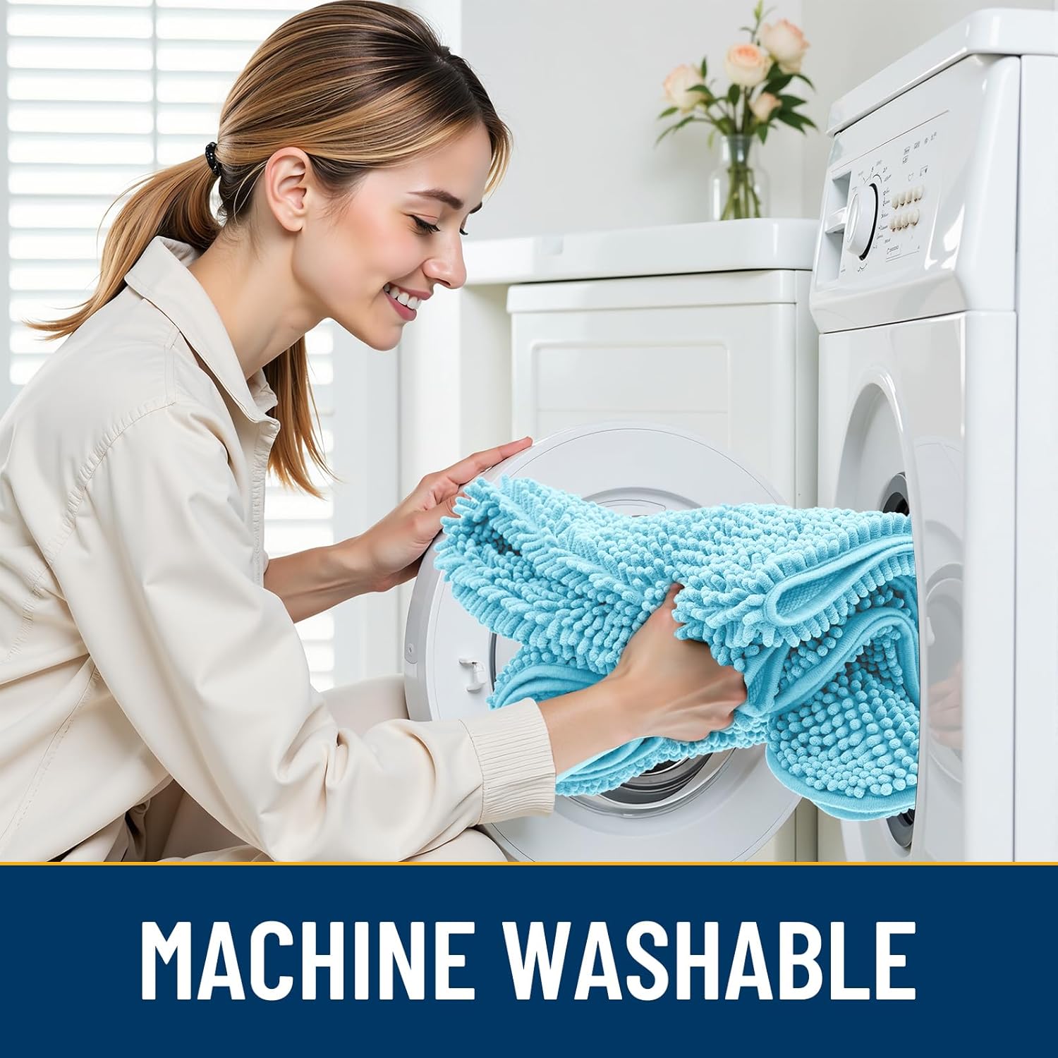 - [Easy Clean and Care] Our indoor door mat for muddy paws is also easy to clean and maintain. Simply shake off the dust or machine wash it for a deeper clean. It dries quickly, so you can be sure it's ready to use again in a short time. Please wash with cold water and dry naturally or at low temperature.