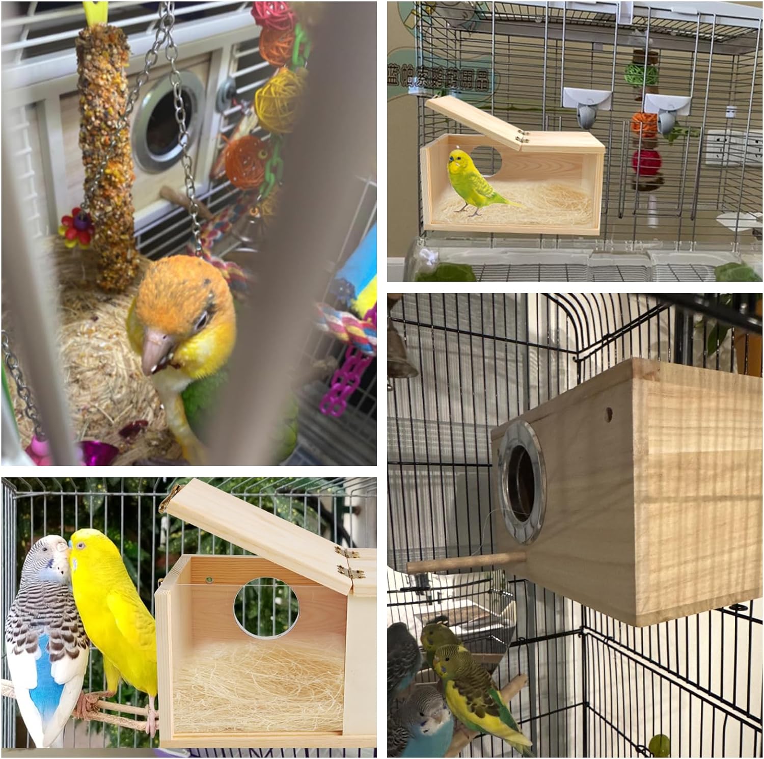 - Multifunctional Bird Box:Bird Nest Box is a warm place,parrot live to rest & play.Nesting box for parakeets help train nesting function of bird.Comfortable & safe parrot breeding box give bird sense of security,encourage pet to reproduce
