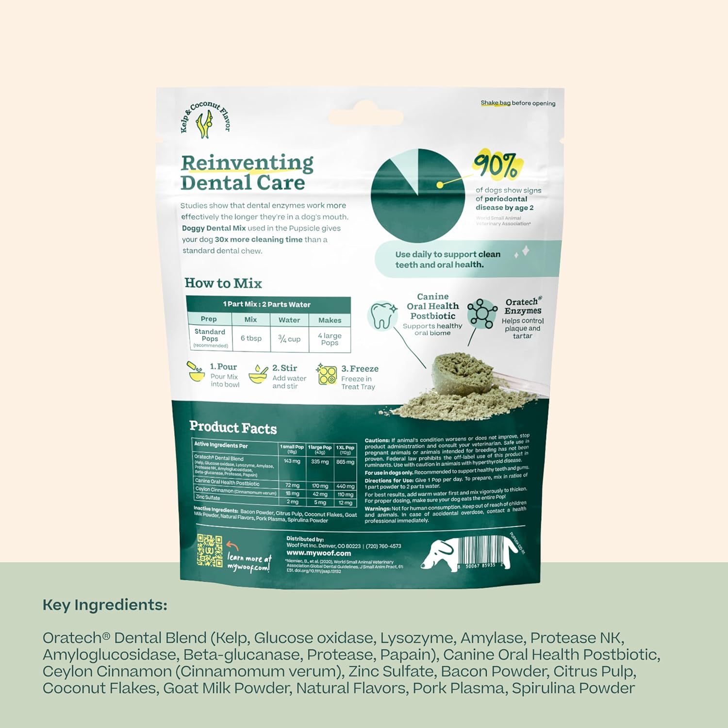 Woof Doggy Dental Pupsicle Mix - Dog Teeth Cleaning Powder for The Pupsicle - Long Lasting Postbiotic Dental Enzyme Mix to Support Oral Health for Dogs