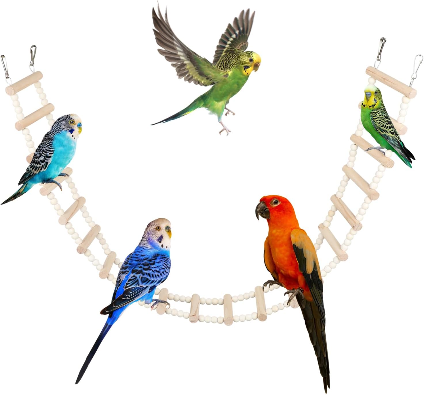 - Flexible & Bendable Design – Built with 20 wooden steps and sturdy stainless steel wire, this 45" ladder easily bends into various shapes to fit different cages or creative play setups – no rust, no hassle!