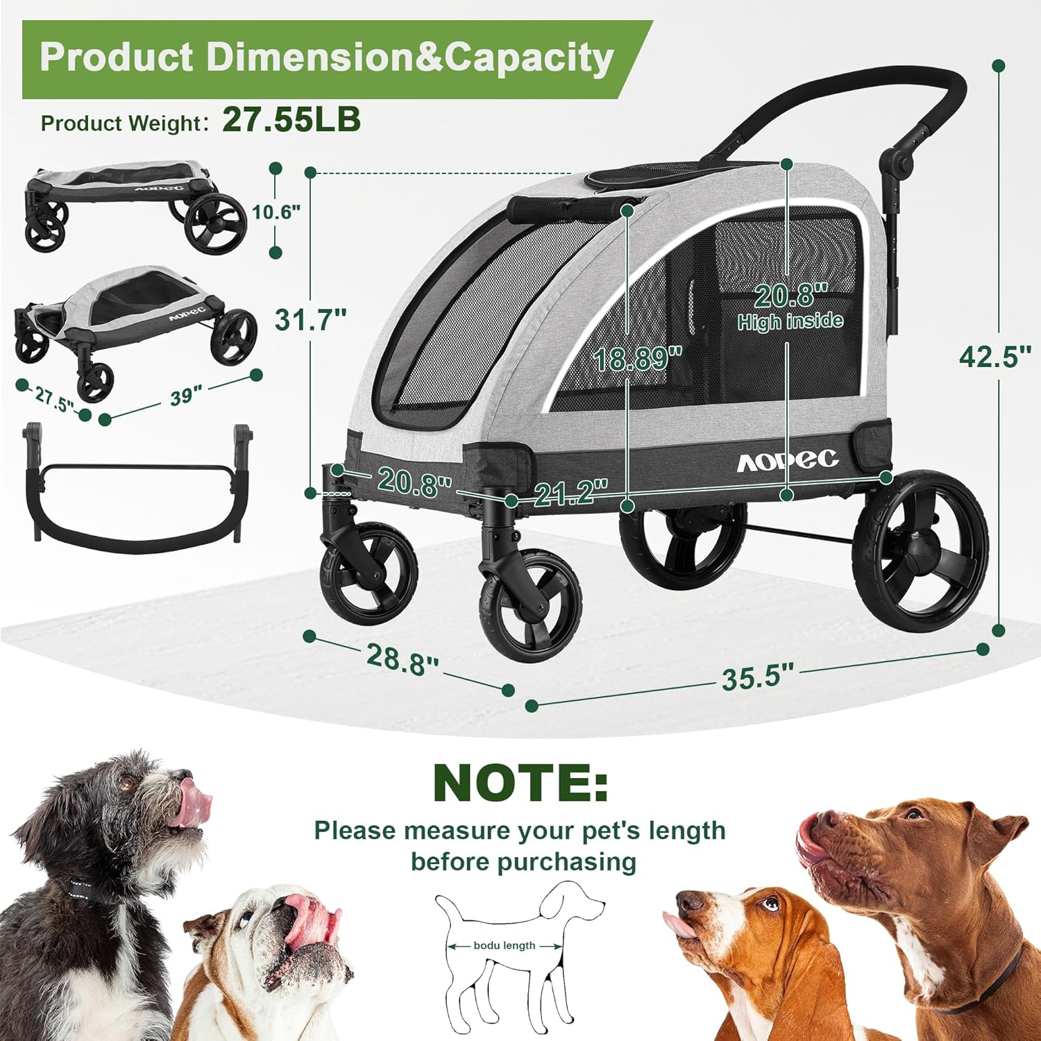 - 【BITE-RESISTANT FABRIC】AOPEC large dog stroller uses 600D cationic fabric, which is soft and comfortable, can withstand pet bites, and ensure that the stroller remains in good condition. We always put the safety and comfort of your pet first.