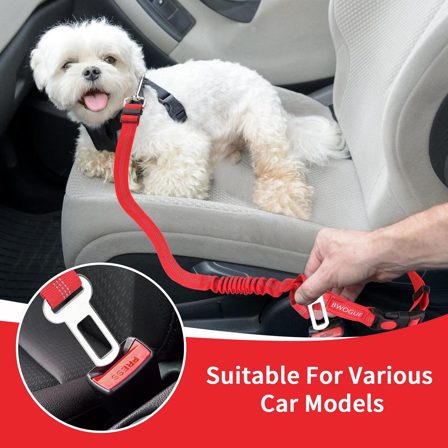 BWOGUE Pet Dog Cat Seat Belt Reflective Car Dog Headrest Restraint Leash Elastic Buffer Bungee Adjustable Tangle-Free Safety Leads Vehicle Seatbelt Harness for Small, Medium and Large Dogs (1 Pack)