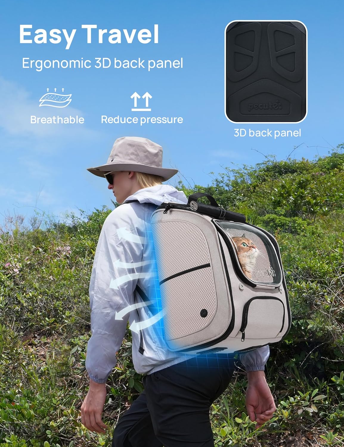- Comfortable Carrying Experience: There is no pulling feeling when carrying the cat, and you don’t need to bend down when carrying it. The one-piece 3D printed back panel fits the back and improves the breathability of the back. A good cat backpack not only serves pets, but also serves pet owners.