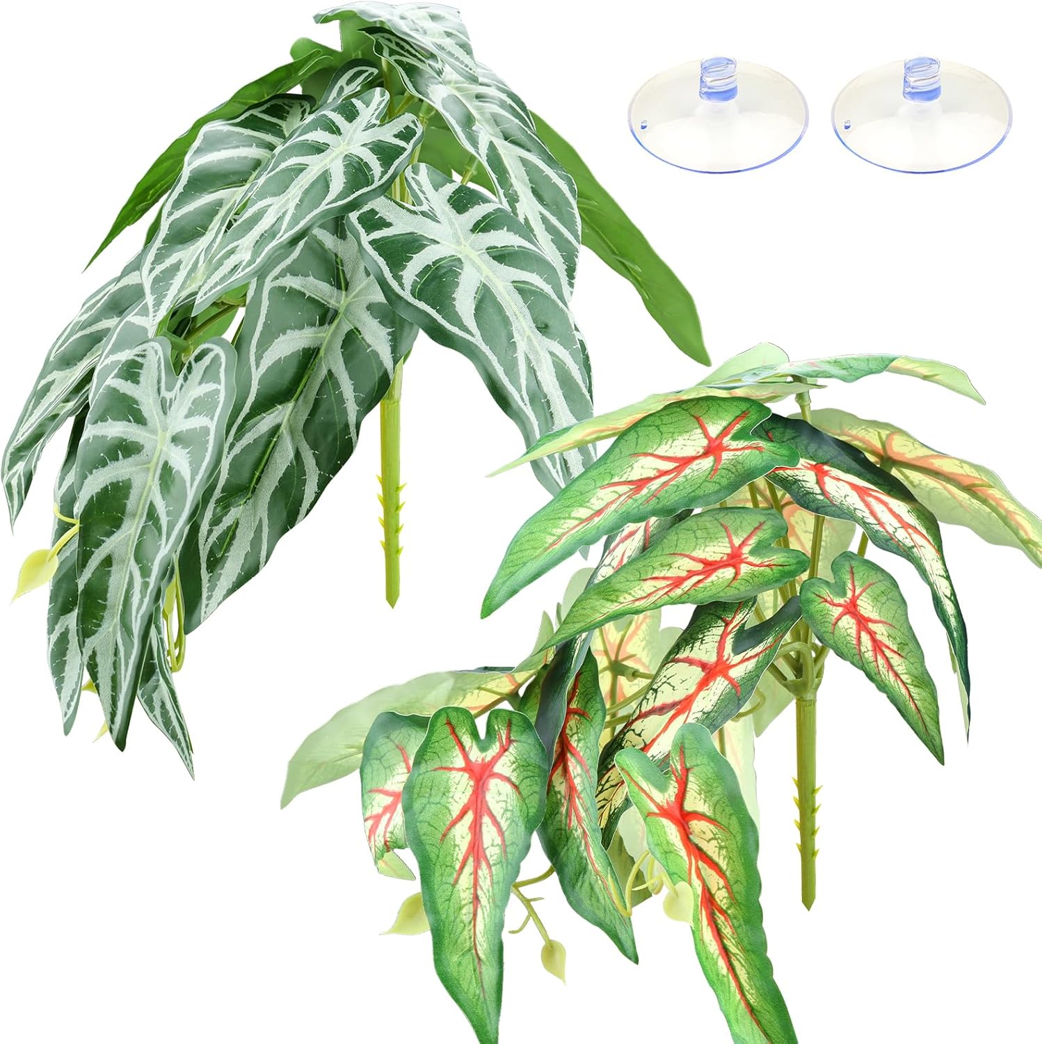- Package Including: 2 pack Reptile Plants Decor Hanging Leaves with suction cups. Good for reptile habitat decorations, terrarium hanging, snake terrarium decorations.