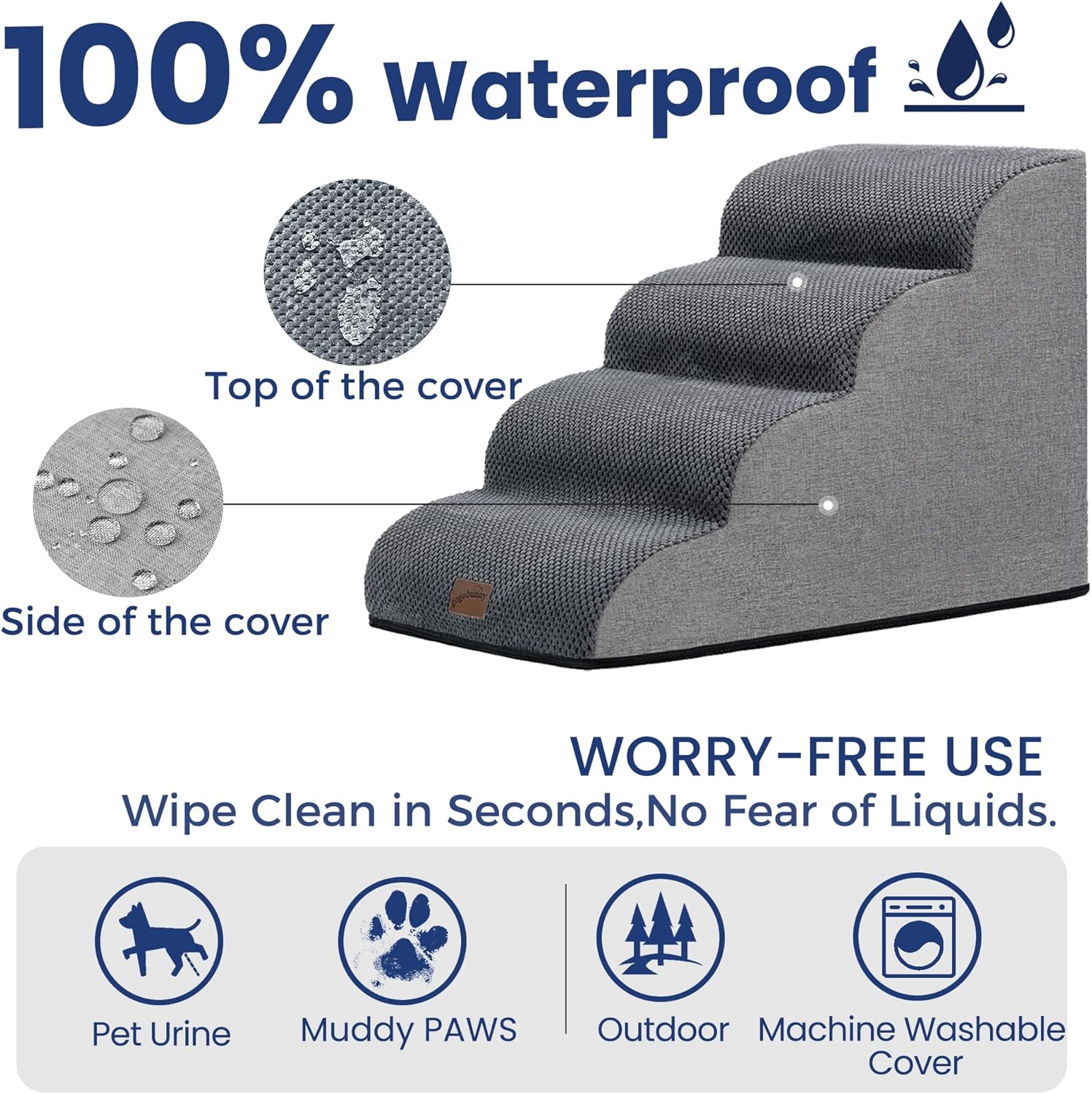 GoGoBunny Waterproof High Density Foam Curved Dog Stairs for High Beds Couches 19.7" H, 4-Step Ramp Dog Steps Friendly to Small Medium Dogs or Pets Joints, Non-Slip Balanced Durable Pet Step, Grey