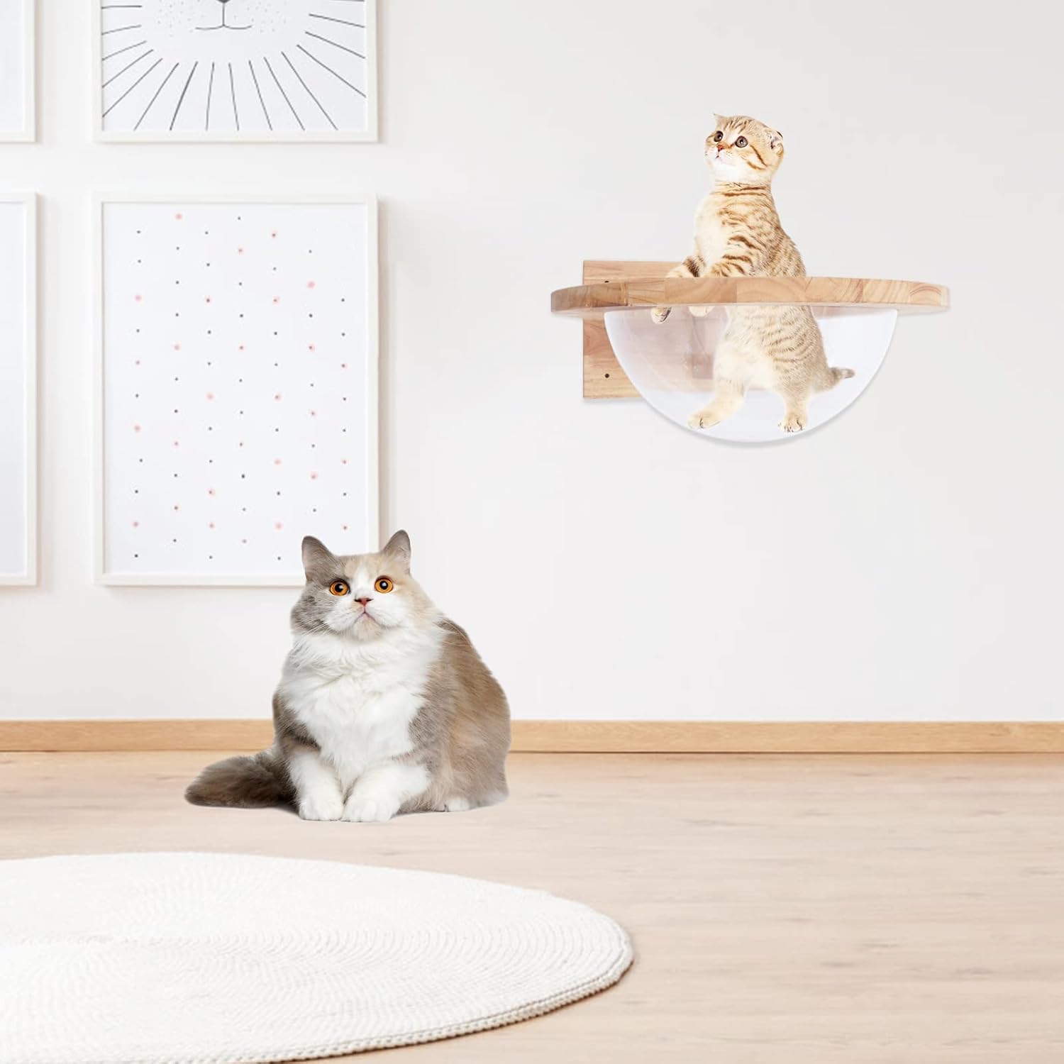 Wooden Cat Hammock, Clear Space Capsule Cat Bed, Wall-Mounted Kitten Walls Shelves Kitty Beds Small Pets Beds, Cats Toy Perch House for Sleeping, Playing, Climbing and Lounging