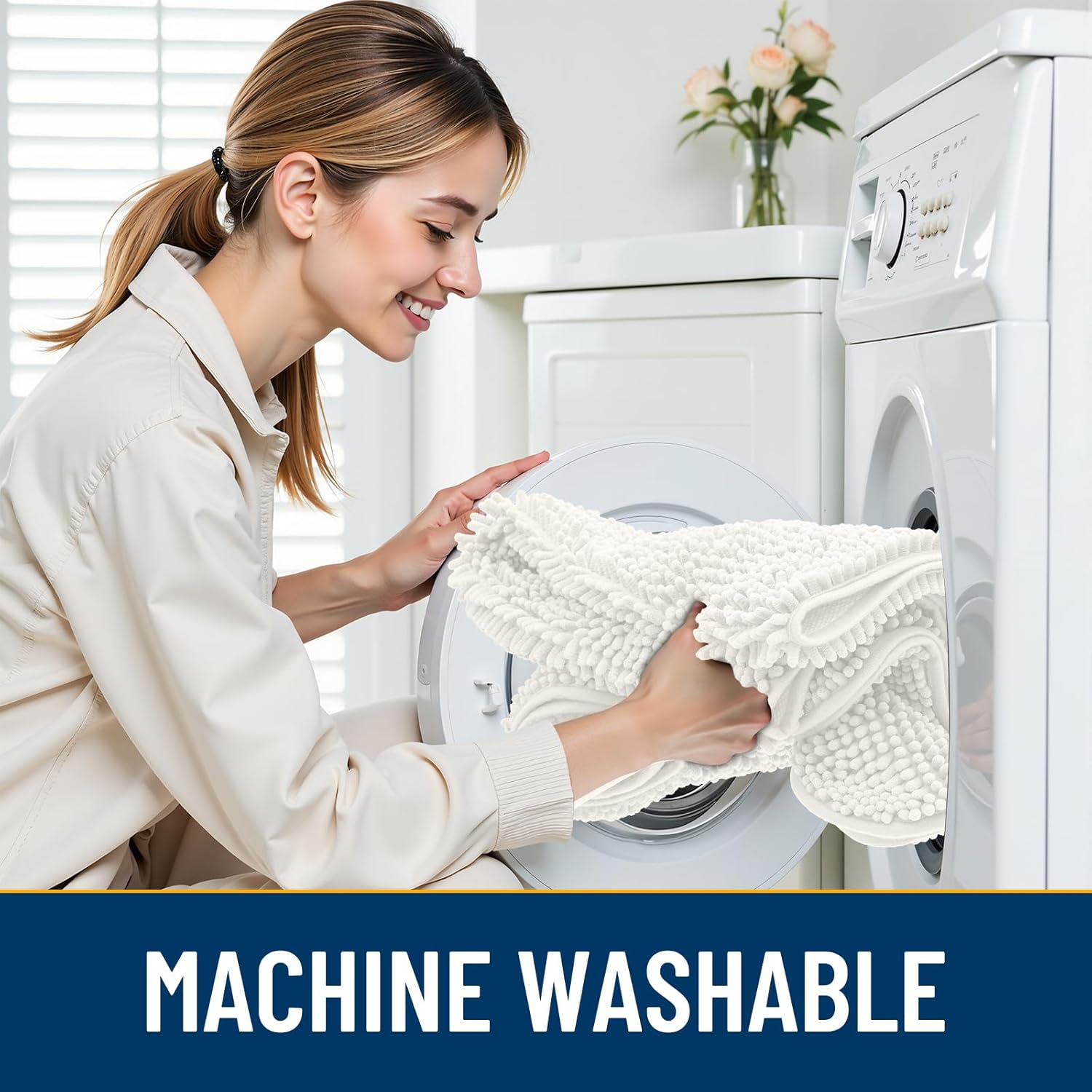 Smiry Dog Door Mat for Muddy Paws 24x16, Absorbs Moisture and Dirt Doormat, Non-Slip Washable Quick Dry Chenille Front Door Mat Indoor Entrance, Entryway Carpet for Inside Floor, Ivory