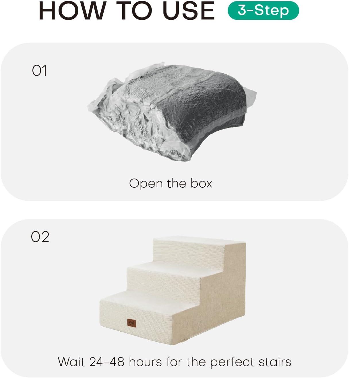 - 【Easy to Clean】: The dog stairs feature a removable, machine washable cover for effortless cleaning. Simply take out the foam core for washing; however, please avoid cleaning the foam and board. After removing from the compression bag, allow 24-48 hours for the foam to fully expand before use for optimal comfort