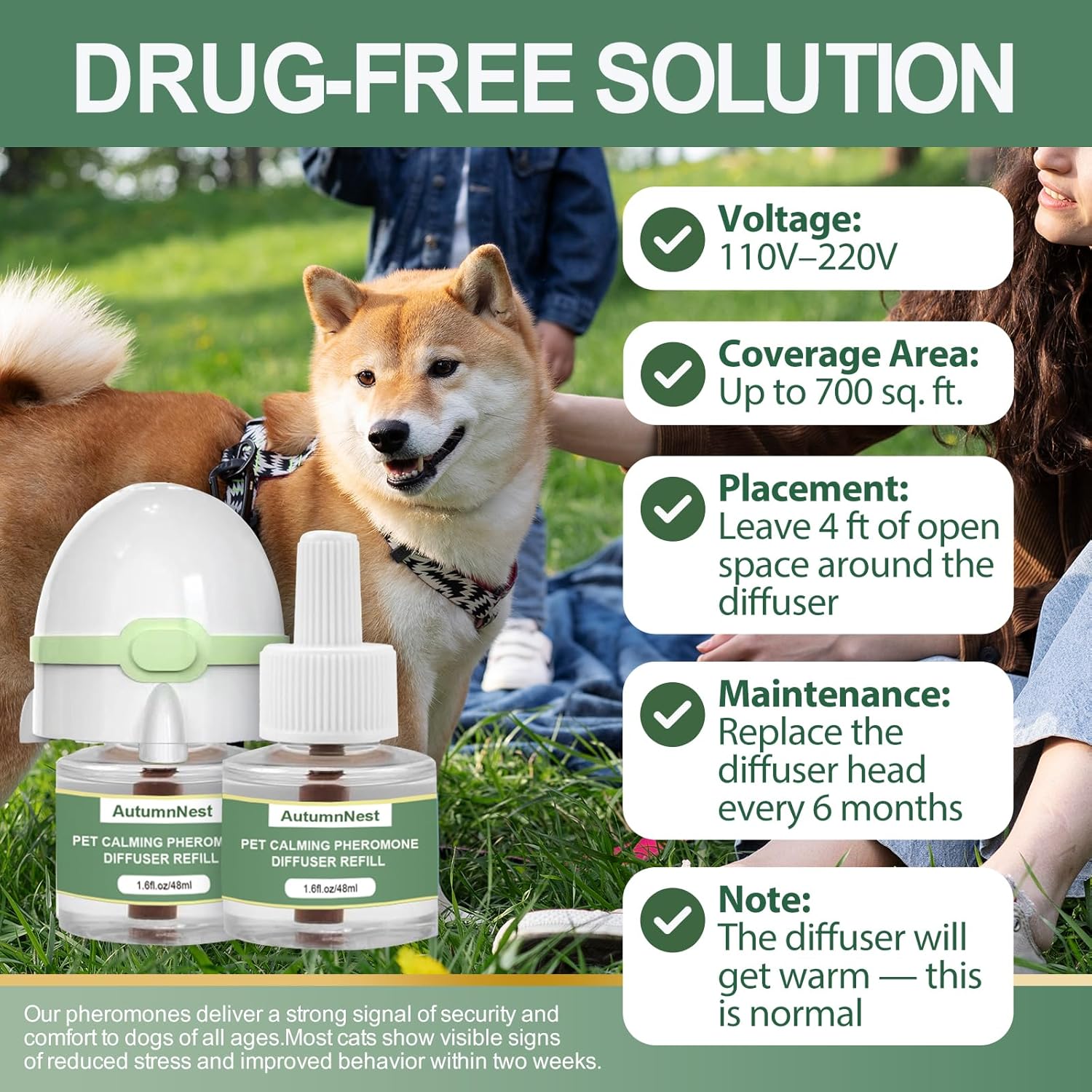 - 【Covers Spacious Areas Up to 700 Sq Ft】 Efficient diffusion supports a large coverage zone, releasing calming pheromones throughout your pet’s favorite spaces for all-day comfort.