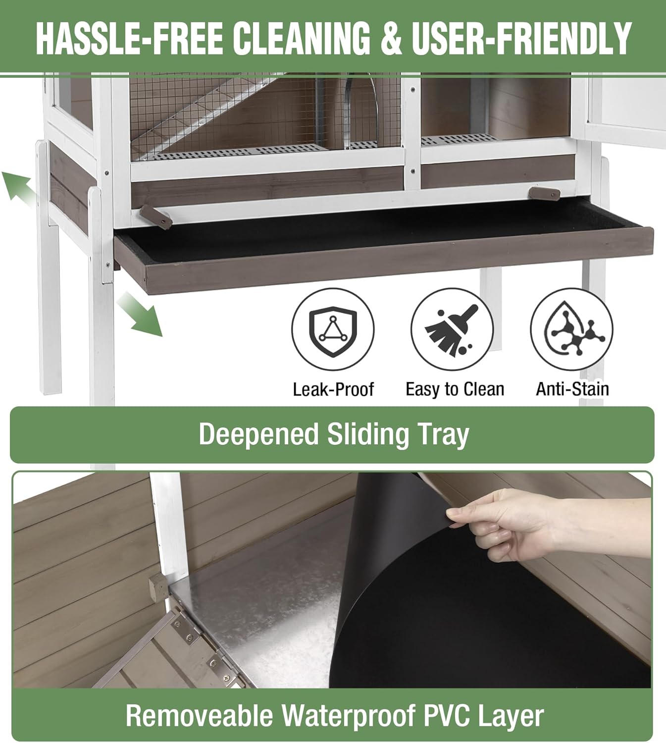 - 𝐋𝐞𝐚𝐤p𝐫𝐨𝐨𝐟 𝐃𝐞𝐞𝐩 𝐓𝐫𝐚𝐲 - The removable deep tray in guinea pig cage prevents leaks, making cleaning effortless. Keep the habitat fresh and hygienic for your pets