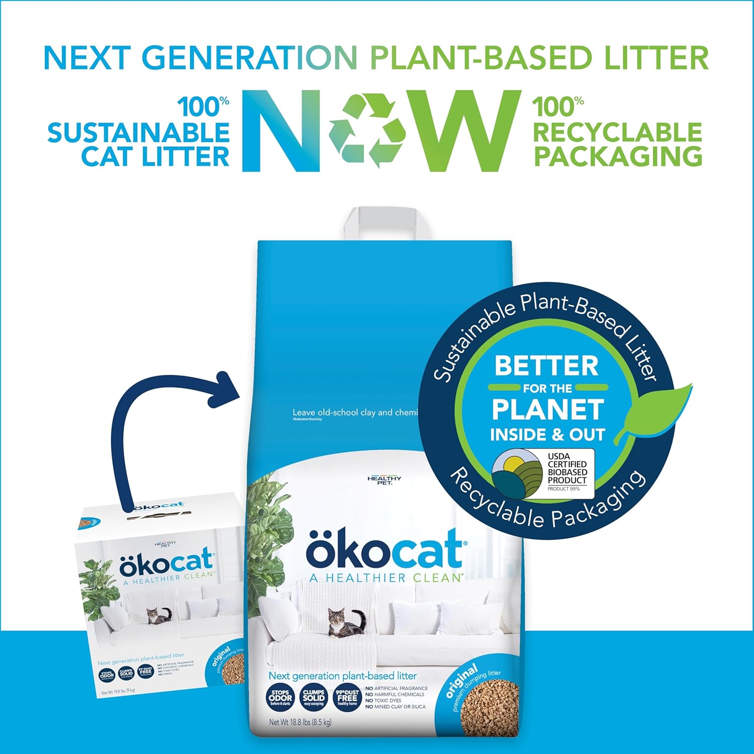 - UNSCENTED NATURAL CAT LITTER: okocat next-generation, plant-based, premium wood clumping cat litter is relentless at controlling odors while being exceptionally absorbent and naturally lightweight for added convenience and cleanliness