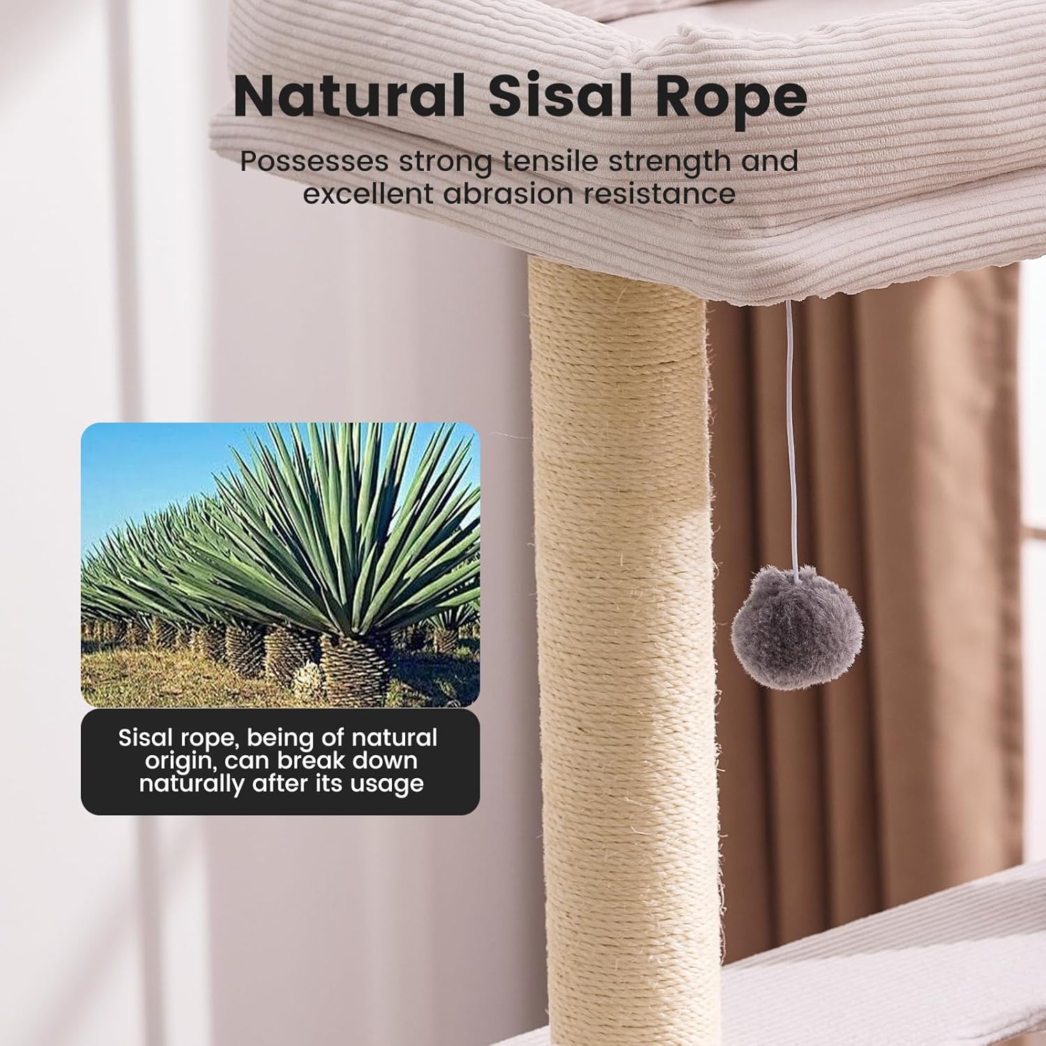 - [Safe & Durable Materials | Pet-Approved] 🌿Eco-Friendly MDF Board: High-density, warp-resistant, for long-lasting safety. ✋ Natural Sisal Wrapped Posts: Protects furniture while satisfying cats' scratching instincts.