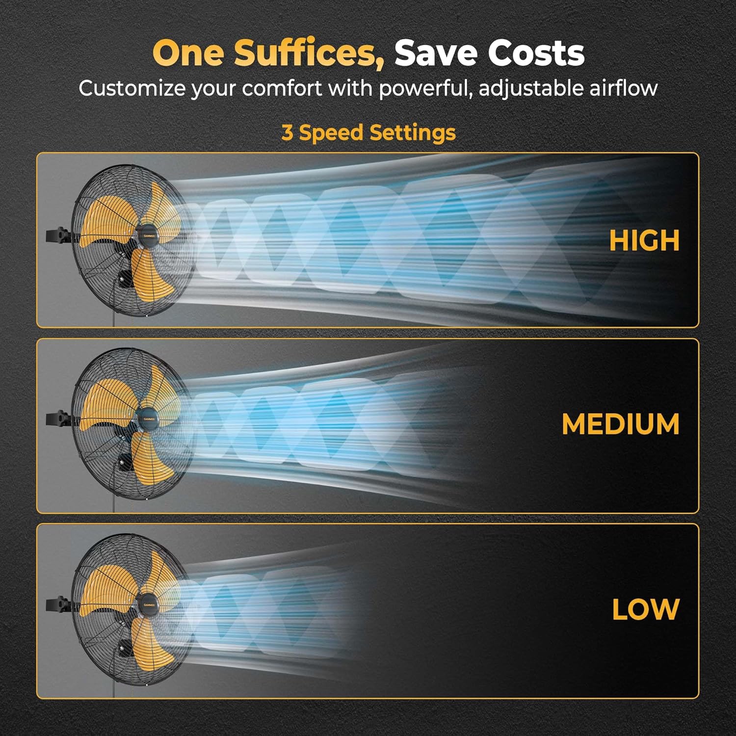 - Triple Safety & Commercial Reliability: A stable wall mount minimizes vibration, while heavy-duty safety latches, safety screw, and overheat protection ensure safety in crowded or complex environments. This fan is ideal for garage, greenhouse, gym, chicken coop, horse barn, shop, or covered outdoor spaces like gazebo, patio, pergola, and porch.
