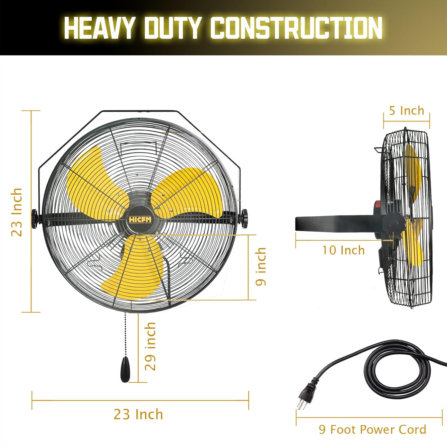 - 【Wind Noise Performance】: HICFM’s new technology contributes high velocity airflow up to 10.2 m/s yet low noise in this wall mounted fan black. 3-Speed adjustable with pull chain control featuring three different speeds. In high speed running, noise is only 64 dB on 3 ft, and 57 dB on 6 ft away from the fan, less noisy than other fan.