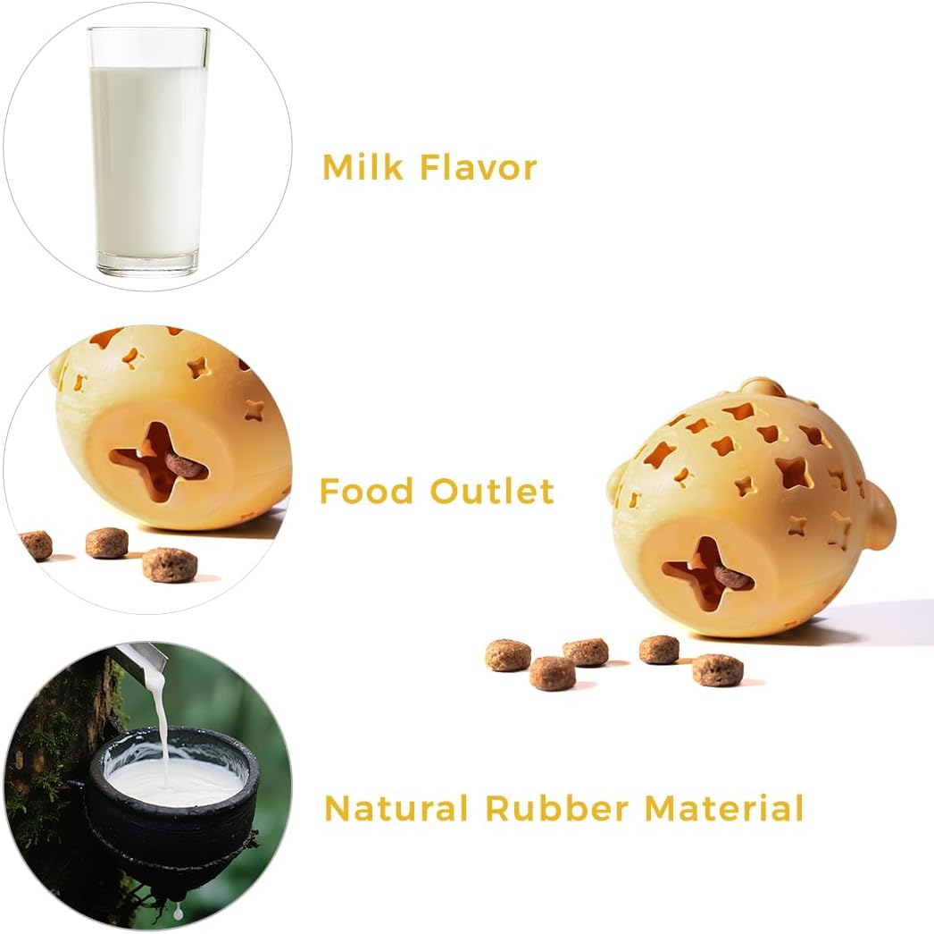 - Safe Material-Interactive dog toys made of non-toxic 100% natural rubber materials are safe for medium and large dog to chew and play. Milk flavor design makes dogs fall in love with cleaning his teeth.