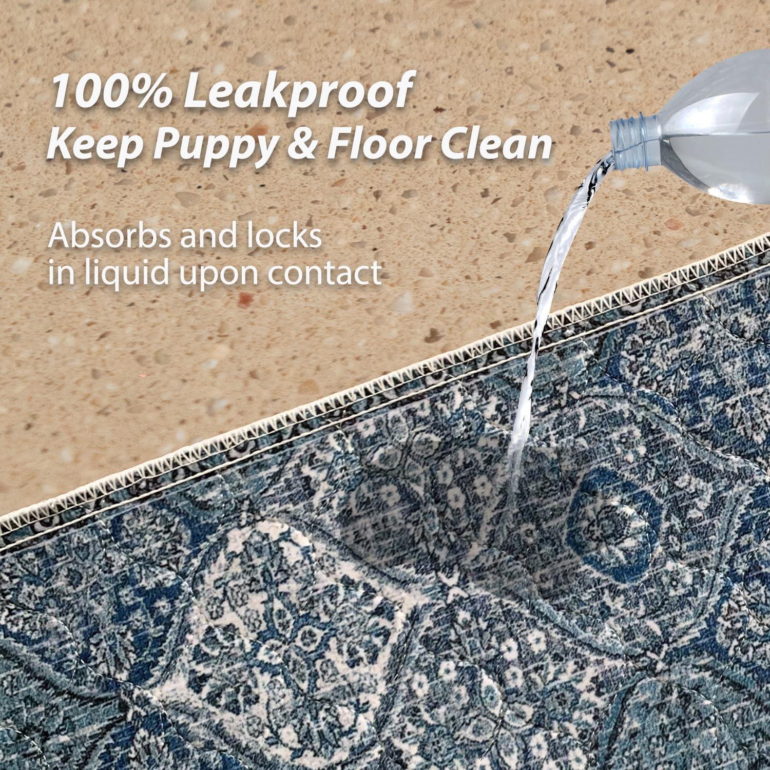nunubaby 4PACK Washable Pee Pads for Dogs, Stylish, Non-Slip and Leak-Proof Pee Pads. Reusable Potty Pads for Dogs for Crates and Floors.(Blue/Multi, 18" x24" )