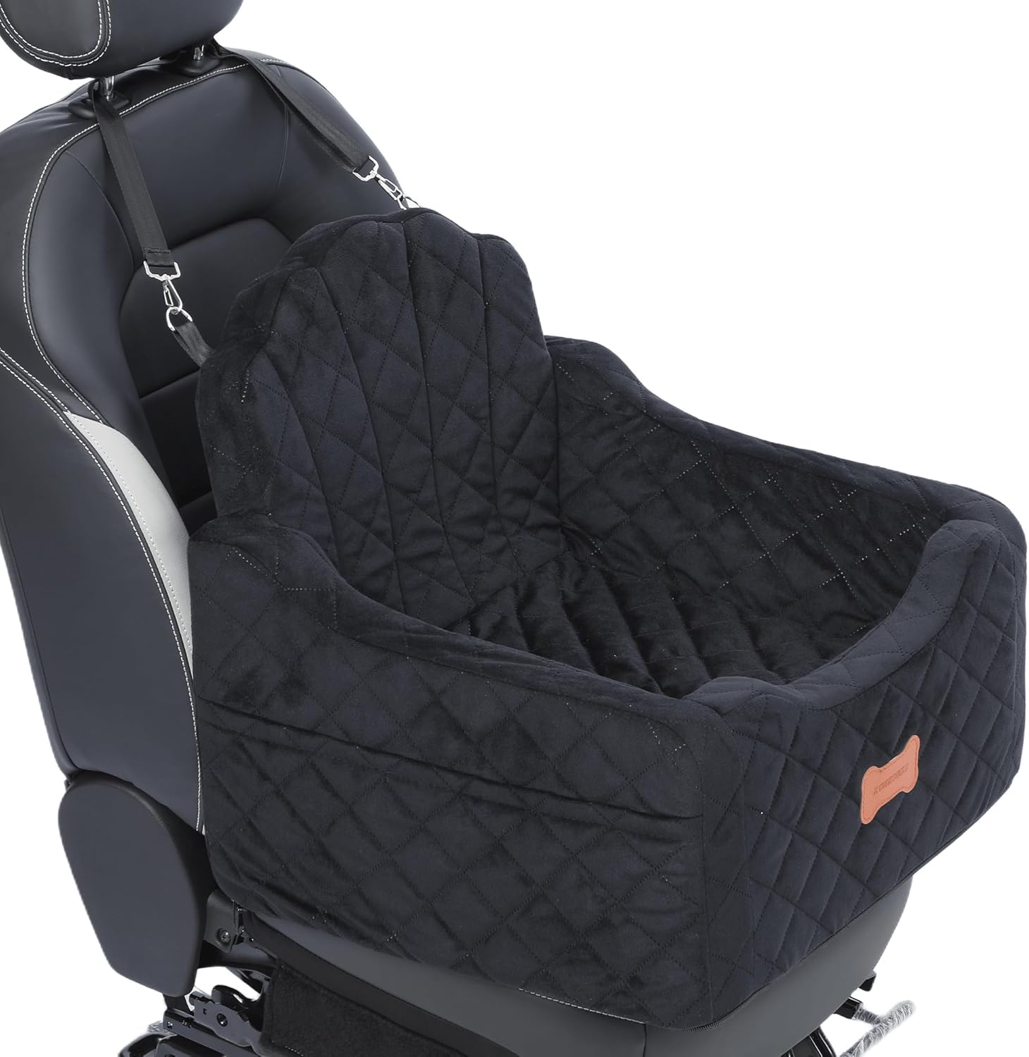 Dog Car Seat for Small Dogs Under 30lbs, Detachable Washable Pet Booster Seat with Safety Belt & Storage Pockets, Travel Car Bed, Black