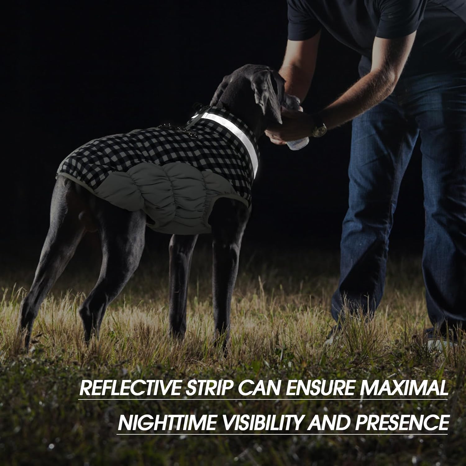 FUAMEY Dog Coat for Medium Dogs,Waterproof Dog Winter Jacket with Harness Built in Puppy Cold Weather Coats Reflective Pet Vest with Zipper Warm Fleece Dogs Snowsuit Windproof Checkerboard M