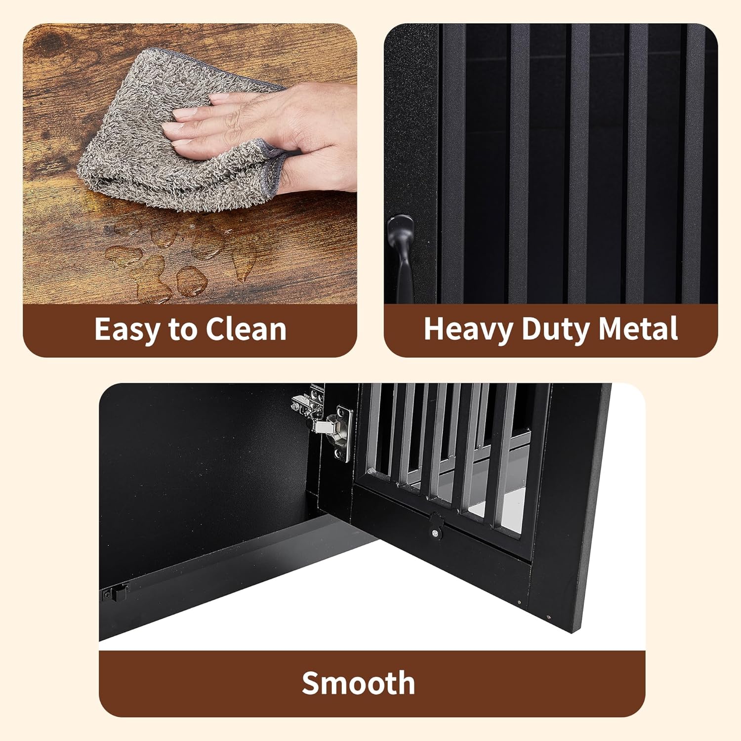 - Sturdy Metal & Wood: Made of durable steel frame and high-quality wood, The double dog crate furniture ensuring long-lasting use and a safe space for your pets