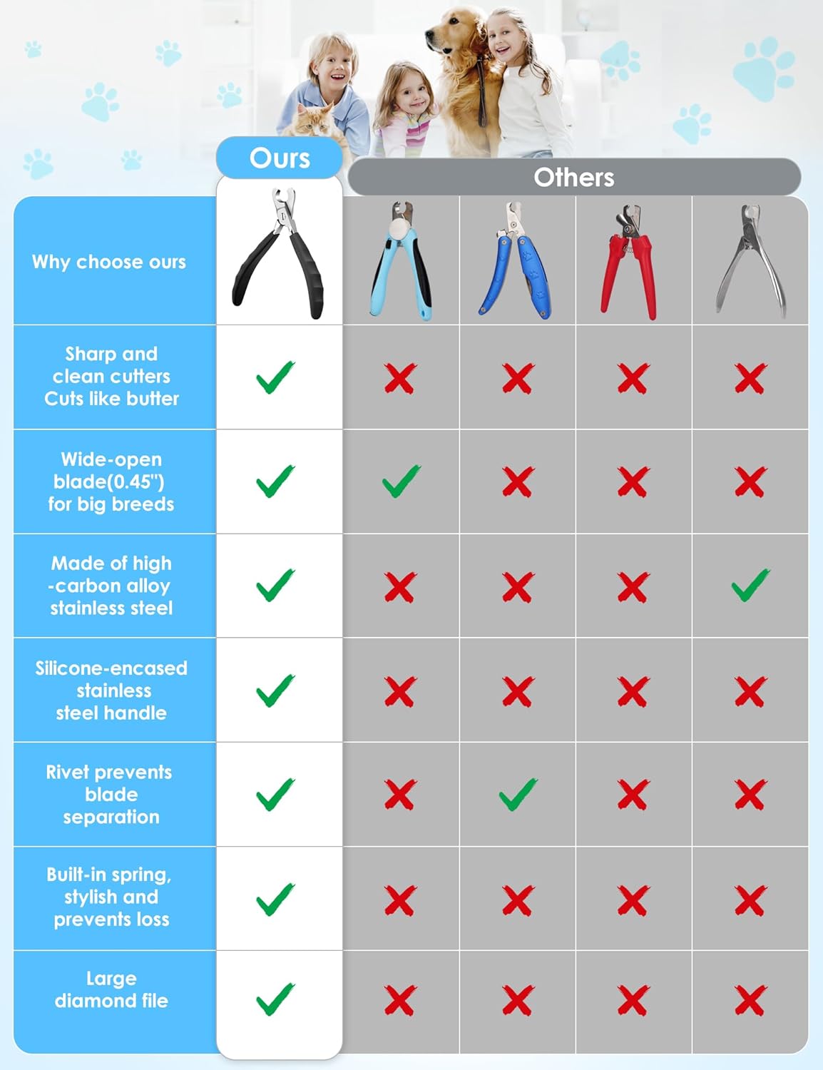 - Upgraded Open Wide: We listen to our customers–the blade opening has been increased to 0.45 inches to better fit the circumference of any giant breed dogs