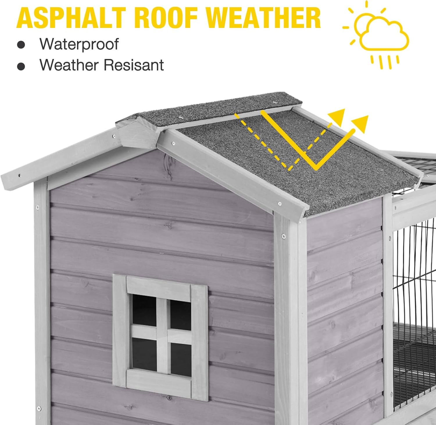 - Weather-Resistant and Durable:Built to withstand various weather conditions, the Mobile Rabbit Hutch features an asphalt roof that is both waterproof and weather-resistant. The hutch's construction ensures that your pet remains protected from the elements, providing a comfortable and safe environment year-round