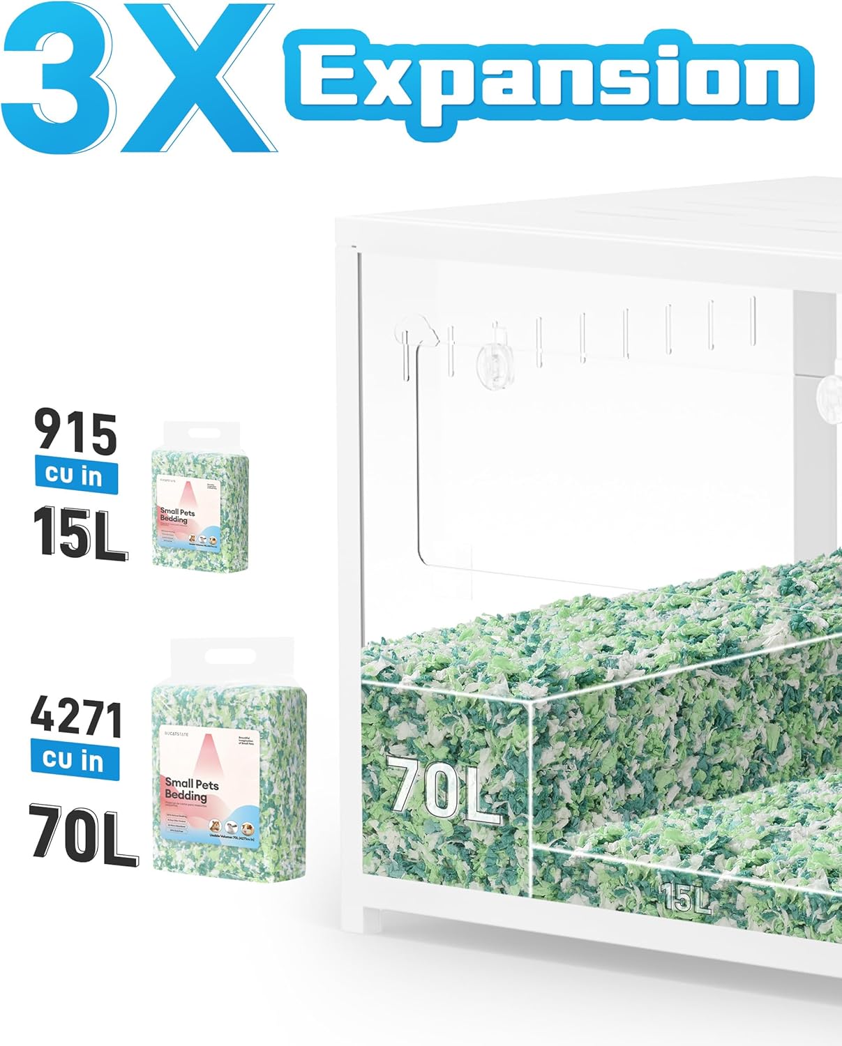 - ๐๐๐ป๐ด๐น๐ฒ ๐๐ฟ๐ฒ๐๐ต ๐ ๐ถ๐ป๐๐ ๐๐ฎ๐ฟ๐ฑ๐ฒ๐ป - 70L BUCATSTATE small animal bedding with up to 3x expansion, you can use less and still cover more space. Brighten up your pet's home with our colorful bedding! It is also like a cloud for your furry friendsโsoft and perfect for burrowing, tunneling, and nesting. This paw-friendly bedding is ideal for hamsters, gerbils, rats, mice, rabbits, guinea pigs, or chinchillas.