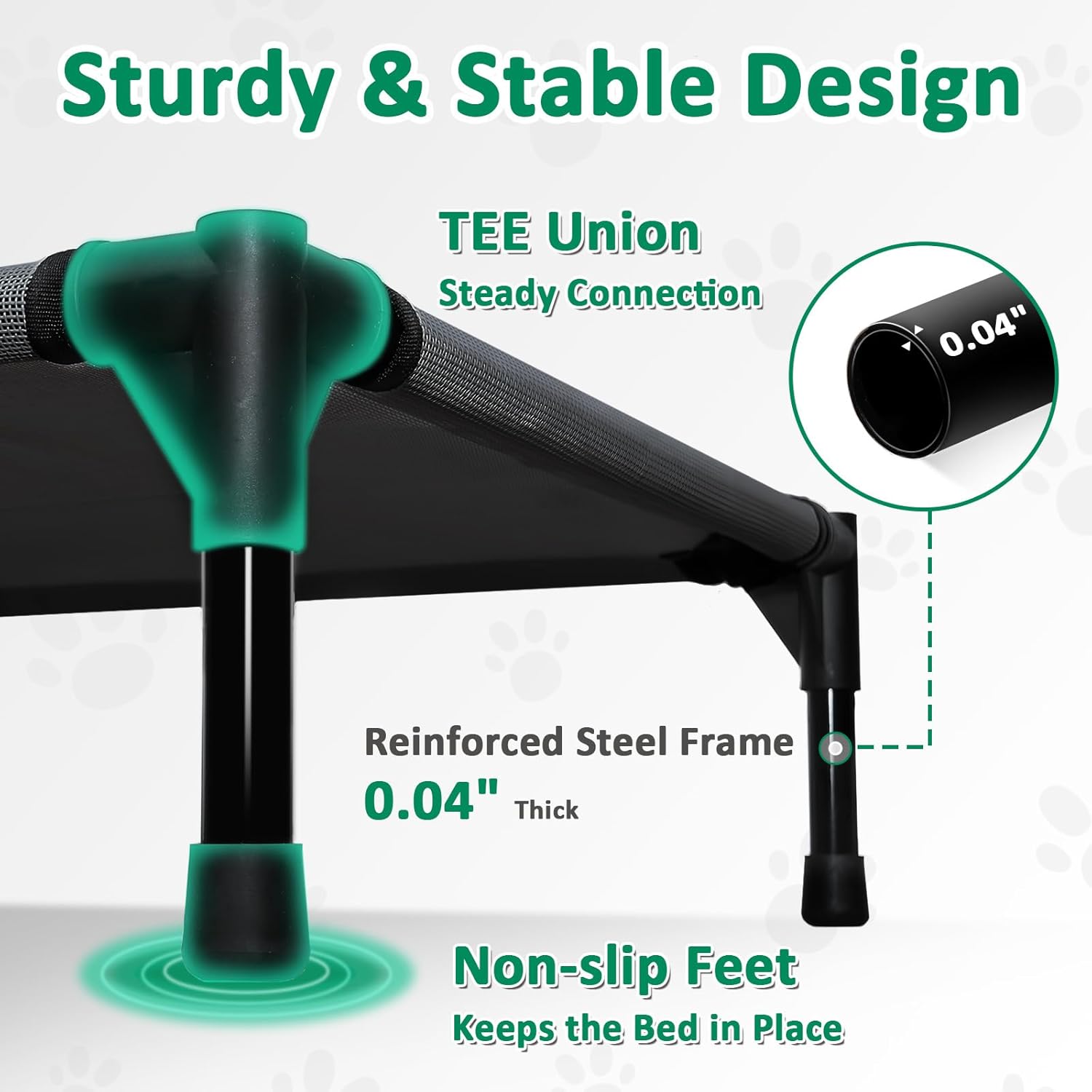 - BREATHABLE TESLIN MESH: This outdoor dog bed comes with breathable and durable Teslin mesh, provides airflow and firm support to relieve joint pressure. Our dog cot bed is suitable for dogs of all life stages, from puppy to the senior