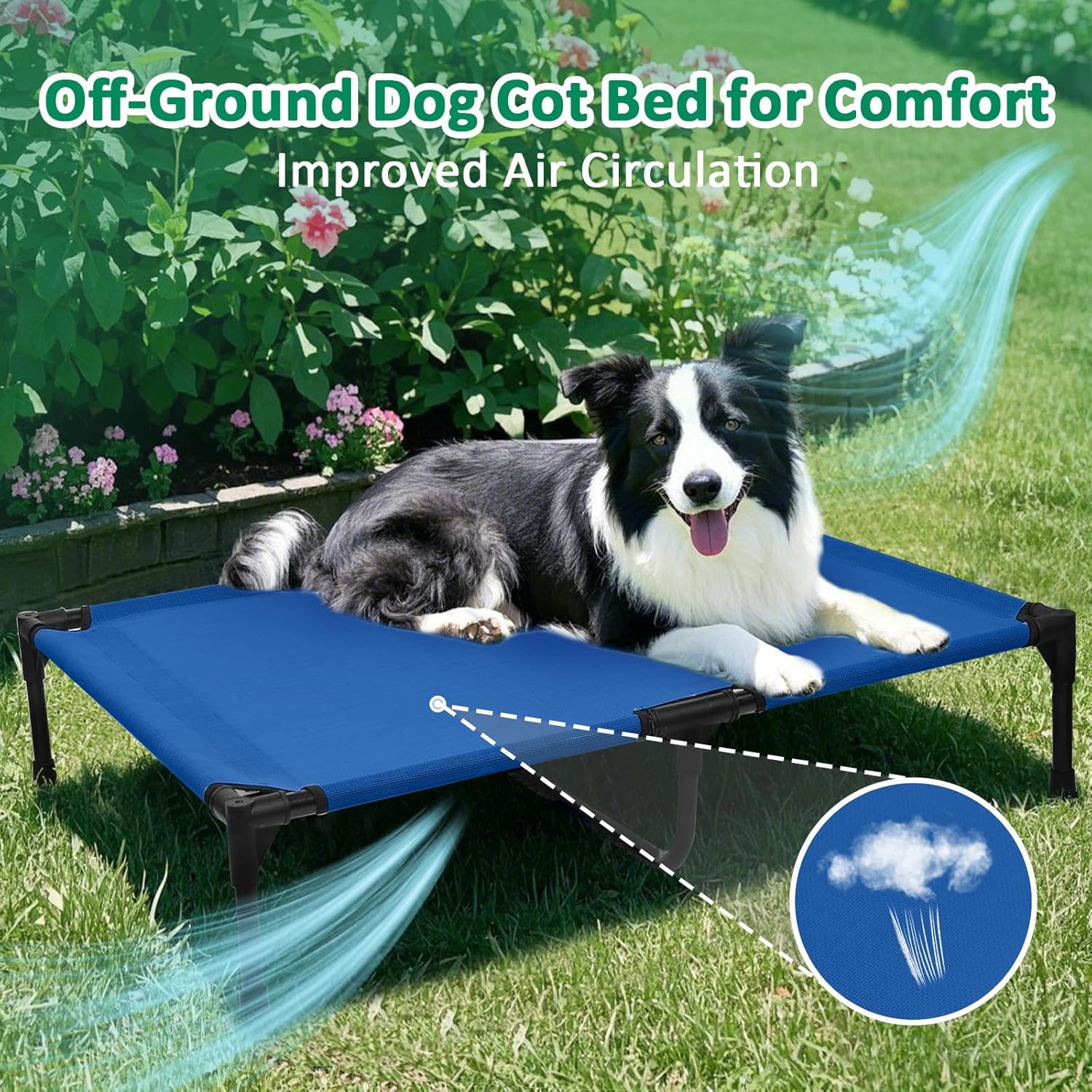 - BREATHABLE TESLIN MESH: This outdoor dog bed comes with breathable and durable Teslin mesh, provides airflow and firm support to relieve joint pressure. Our dog cot bed is suitable for dogs of all life stages, from puppy to the senior