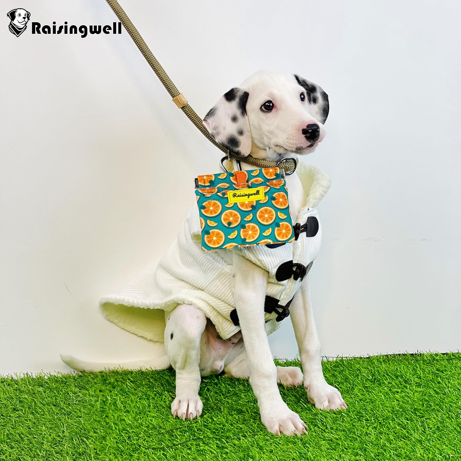 - Durable Material: Raisingwell's dog treat training pouch is crafted from durable, washable, non-toxic vegan fabric, made of pure cotton. In particular, the waterproof lining addresses the issue of difficult cleaning inside the training pouch.