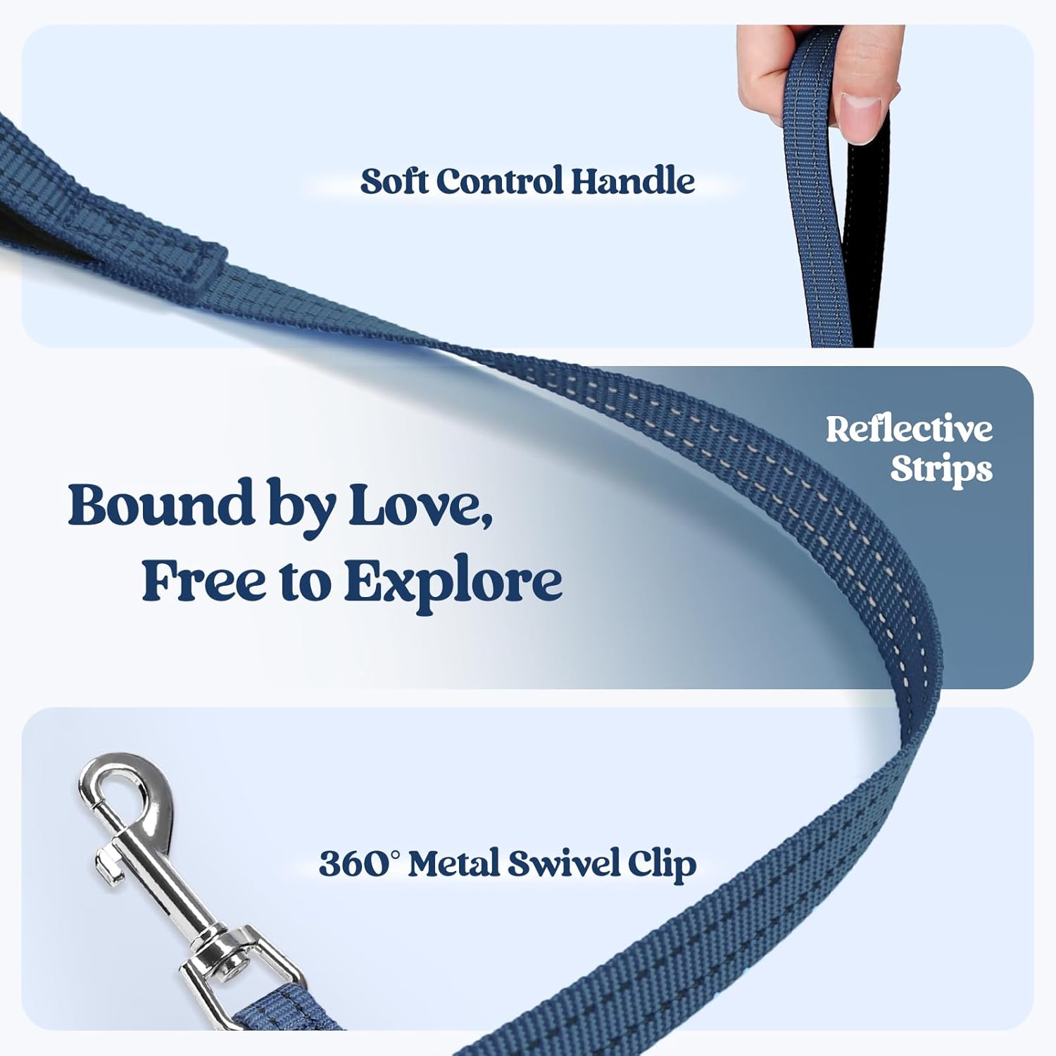 - Dog Harness with Leash Set:The color-matching harness and leash with reflective bands make it fashion and visible for pet outing. The leash is 5.15ft in length, with an anti-tangling clip and a palm-friendly handle