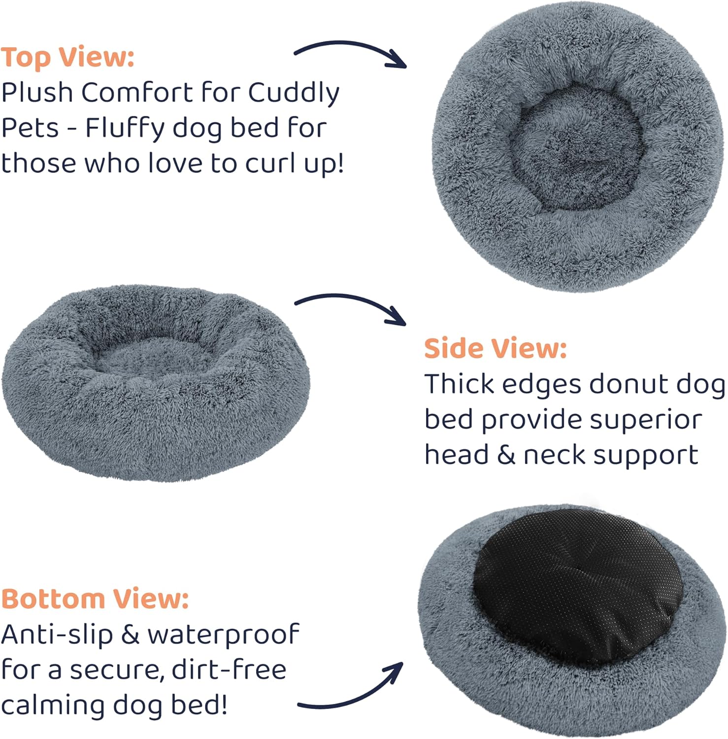 - Wrap Your Pet in Cloud-Like Comfort - Our Petloox dog donut bed is designed with ultra-soft, shaggy plush materials that pets absolutely adore, creating a cuddly, inviting space they’ll love to snuggle into. Perfect for restful naps and relieving anxiety, this round dog bed is perfect for every size and breed, from tiny puppies, chihuahuas, and yorkies to larger dogs who crave extra warmth and comfort.