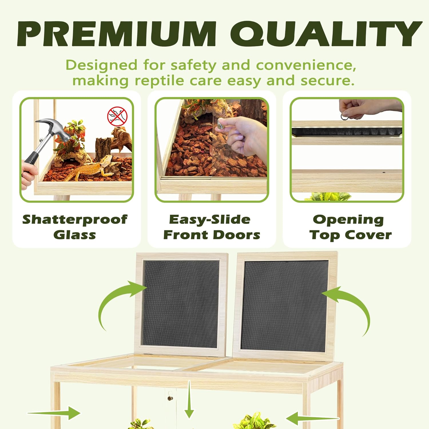 - 【Premium Wooden Reptile Habitat】Give your reptiles a safe and dependable home. Crafted from solid wood core with double sided water-repellent coating, this enclosure is built to last while maintaining a dry and stable environment. Specially designed for terrestrial reptiles (not for aquatic species), it provides a reliable space where your pet can thrive every day.